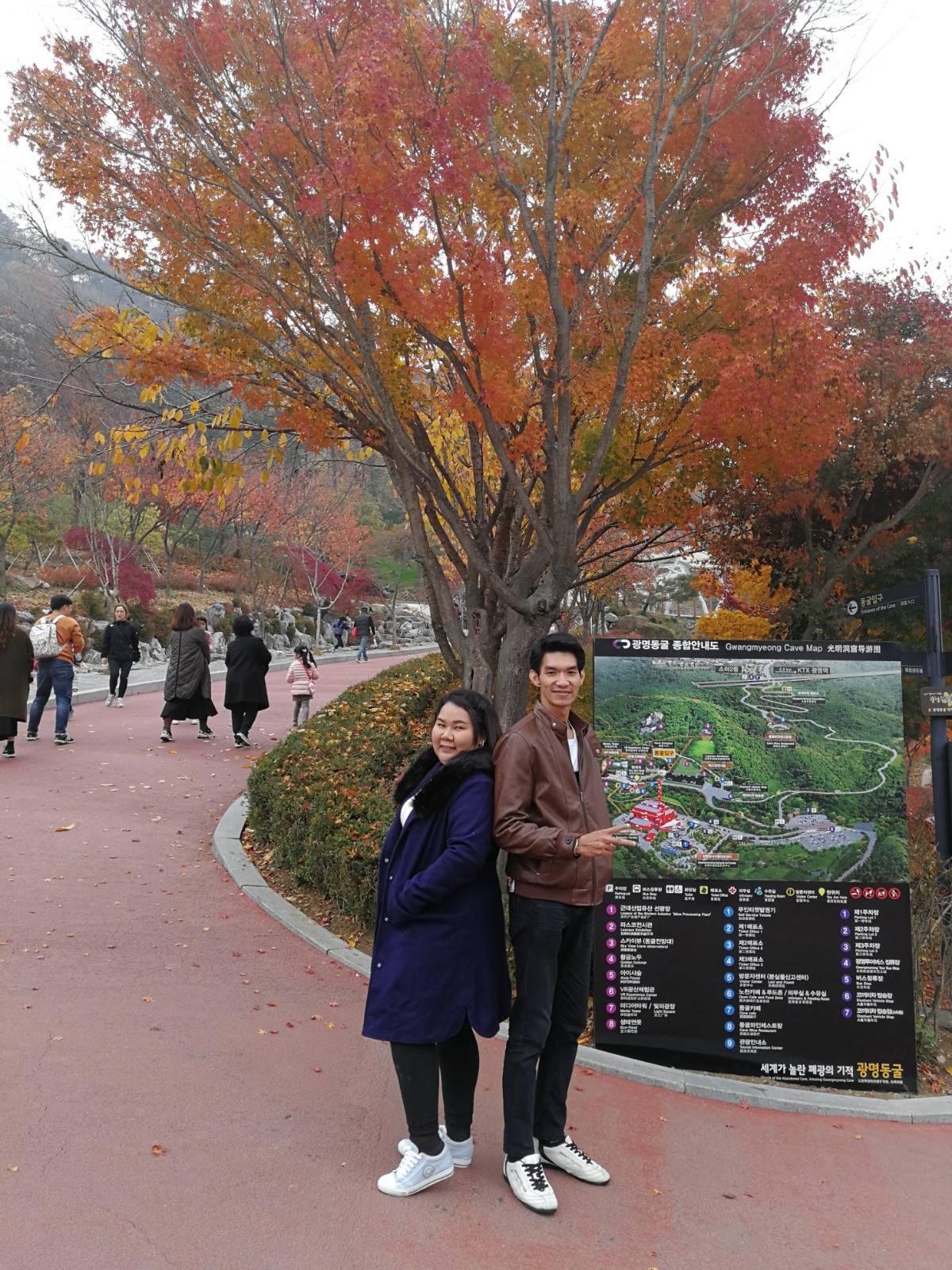 ที่แรกที่ไปคือถ้ำควังเมียงค่ะ เป็นที่ท่องเที่ยวแห่งใหม่ของเกาหลีที่พึ่ลเปิดค่ะ ตอนจะไปก็ไม่ค่อยอยากไปนะ อารมถึงเที่ยวถ้ำบ้านเรา แต่พอไปถึง แค่ด้านล่างของถ้ำ โอ้โหหหหหหหหหถูกใจอิเจ้ละเกิ๊นนนนนนนนนนใบไม้เปลี่ยนสี สวยชิบบบบบบ