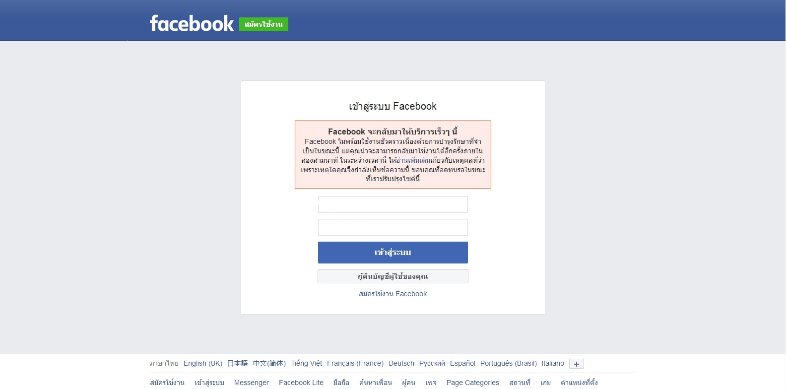 Facebook ทำไมเข้าไม่ได้
