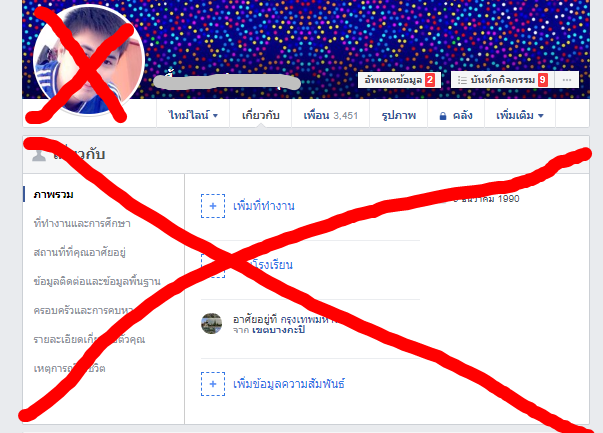 แต่ถ้าไม่ได้ ทำให้ไม่เห็นข้อมูลต่างๆใน facebook ก็ยังดีครับ เช่นพวก รูปภาพโปรไฟล์ รูปต่างๆในอัลบั้ม สิ่งที่อยู่บนทามไลน์ และข้อมูลอื่นๆ