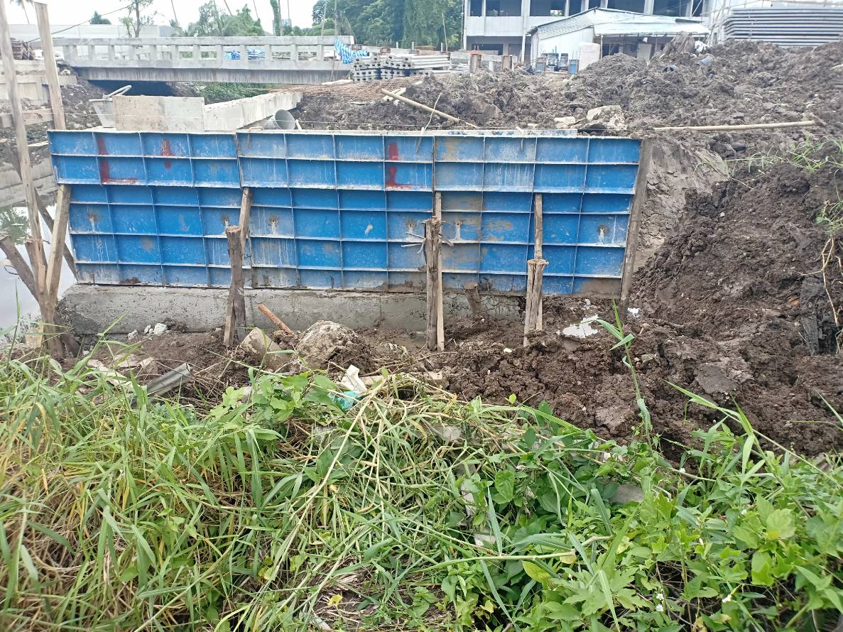 คือก่อนหน้านี้ เราเอาไม้ไปปักไว้สูง ๆ เพื่อให้โครงการรู้ว่าตรงนี้คือ หมุดที่ดินบ้านเรา ทีนี้ก็มีการคุยกันตั้งแต่ต้นเดือน ตุลาคม ทางโครงการบอกว่า ถ้ารางวัดที่ดินเค้า ค่าใช้จ่ายมันเยอะกว่า เพราะพื้นทีมากกว่า ขอให้ทางเราไปเรียกที่ดินมารางวัด โครงการจะออกค่าใช้จ่ายให้ เวลาล่วงเลย โน่นนี่นั้น ติดต่อไม่ได้บาง ท่อน้ำแตกบ้าง เนื่องจากทางทำกำแพง (ถมดินทับ)