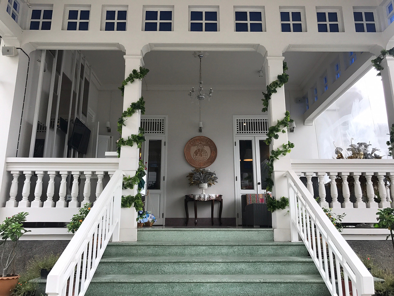 ห้องรับรอง มีเคาน์เตอร์กาแฟบริการคอกาแฟ และที่อีกด้านของห้องมีเก้าอี้แดง ซึ่งมีประวัติเคยอยู่ในฉากหนังสมัยก่อนหลายเรื่อง อาทิ เรื่องเล็บครุฑ
