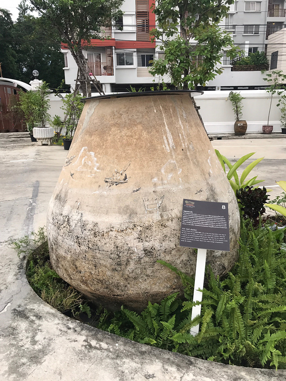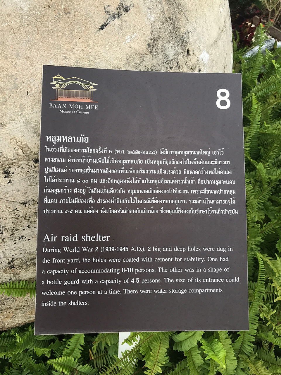 หลุมหลบภัย ใช้ในสมัยสงครามโลกครั้งที่ 2 จริงๆฝังอยู่ในใต้ดิน แต่ขุดขึ้นมาตั้งโชว์ให้เห็น ผู้จัดการร้านเล่าว่า เมื่อสมัยสงครามโลกครั้งที่ 2 ถ้าได้ยินเสียงหวอ ก็จะต้องรีบหลบเข้าไปในหลุมนี้ ซึ่งหลุมสามารถบรรจุคนได้ 4-5 คนเลยทีเดียว (นึกตามแล้วอึดอัดแทนเลย)