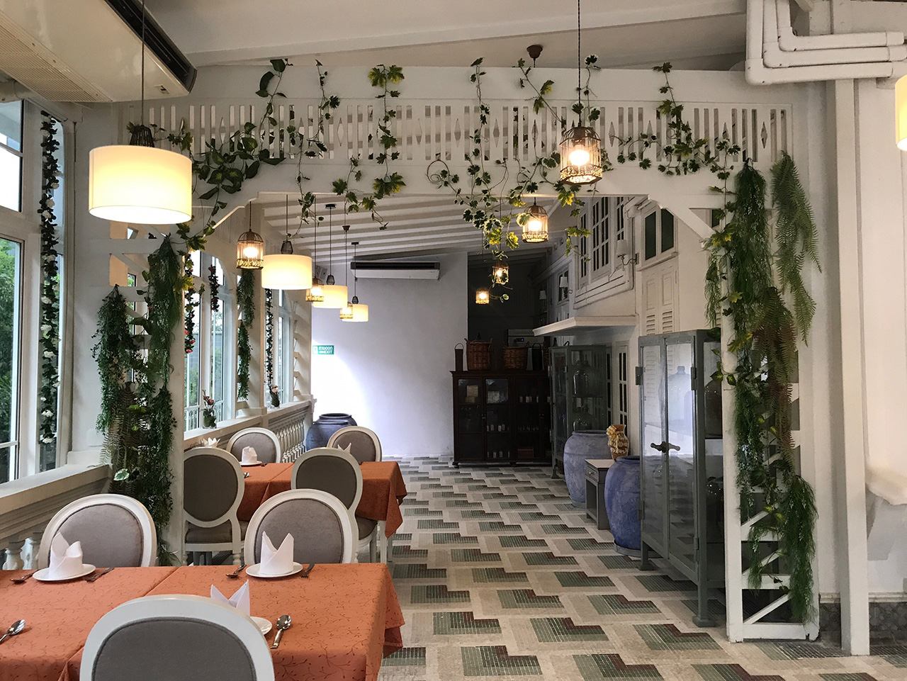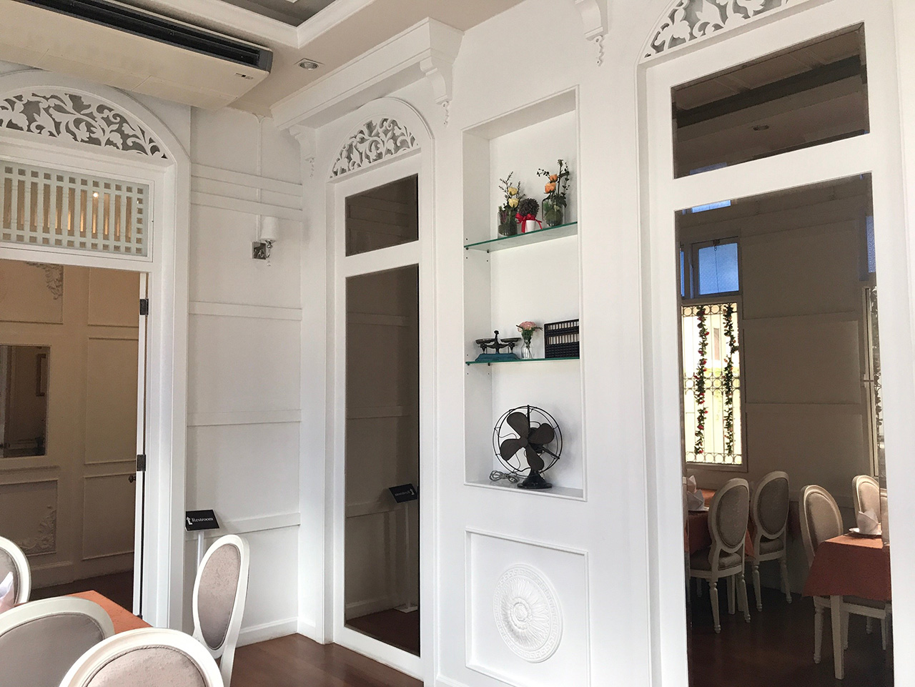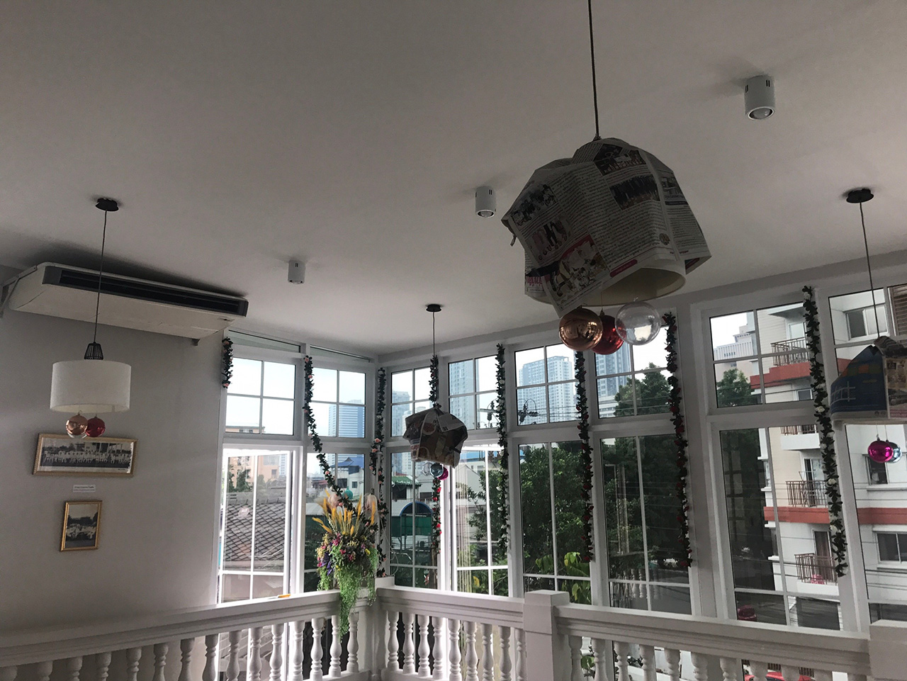 ห้องตรงระเบียงชั้น 2 วันที่ไป ทางร้านแจ้งว่าเพิ่งทาสีฝ้าใหม่เสร็จ เลยยังเห็นหนังสือพิมพ์ห่อโคมไฟอยู่นะครับ