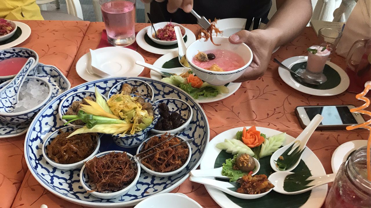 หลังจากสำรวจคร่าว ๆ แล้ว ก็ตัดมาที่โต๊ะอาหารกันเลยครับ โดยเมนูอาหารที่ผมสั่งวันนี้จะเน้นเป็นอาหารไทยโบราณ (จริง ๆ ที่ร้านมีเมนู อาหารยุโรป และ อาหารทั่วๆไป) เพื่อให้ทั้งเจ้านายต่างประเทศได้ลองชิม รวมถึงพนักงานในออฟฟิศหลายๆคนที่ไม่เคยกินอาหารไทยโบราณ รวมถึงตัวผมเองด้วย
