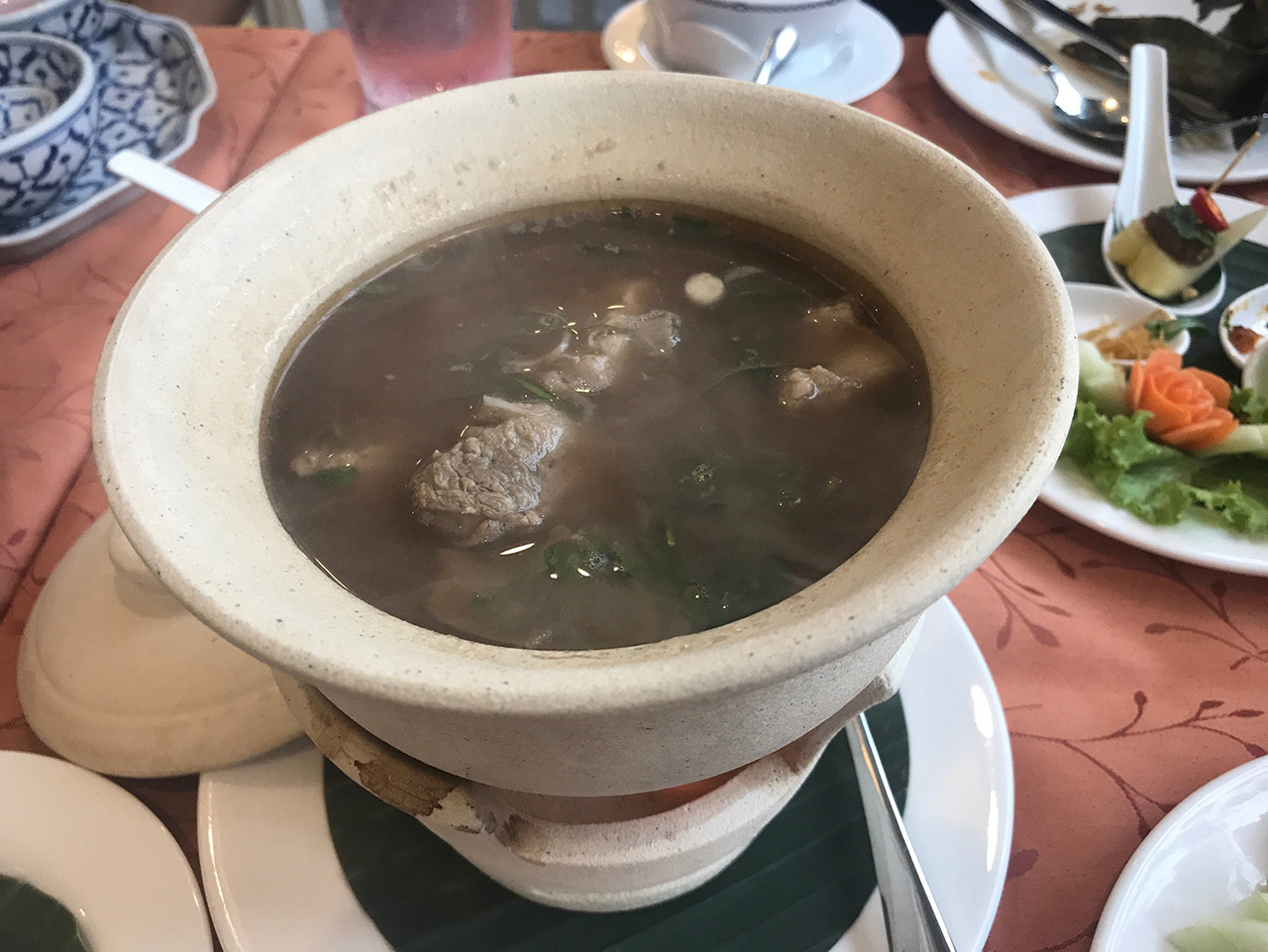 เคยเห็นเมนูนี้จากรายการอาหาร Top Chef ชื่อติดหูแต่นั้นมา เลยอยากลองชิมอาหารไทยโบราณนี้ ทางร้านเสิร์ฟมาในลักษณะหม้อไฟ (หม้อดิน) เมื่อเปิดฝาหม้อ กลิ่มจะหอมลอยขึ้นมาเลย เป็นที่มาของคำว่าแกงรัญจวน เนื่องจากกลิ่นหอมรัญจวนนี่เอง ตัวแกงมีรสชาติเข้มข้นจากเครื่องเทศต่างๆ และกลิ่นหอมของกะปิ (กลิ่นกะปิไม่แรงนะ) ส่วนเนื้อหมูในแกงก็นุ่มอร่อย เป็นอีกเมนูที่ไม่ควรพลาดเลยครับ เพราะหอมอร่อย หากินยาก