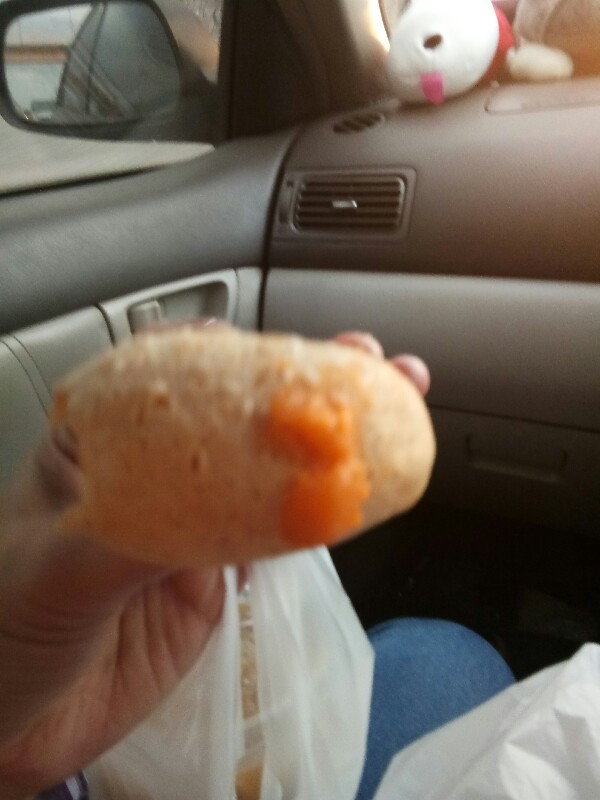 ก็กัดๆไป จนเกินครึ่ง ก็เอ๊ะ ไส้มันไปไหนอ่ะ กัดไม่เจอไส้ซะที ก็เลยดูไอ้เจ้าก้อนที่เรากัดกินไปค่ะ ตามสองรูปนี่ด้านล่างเลยนะคะ
