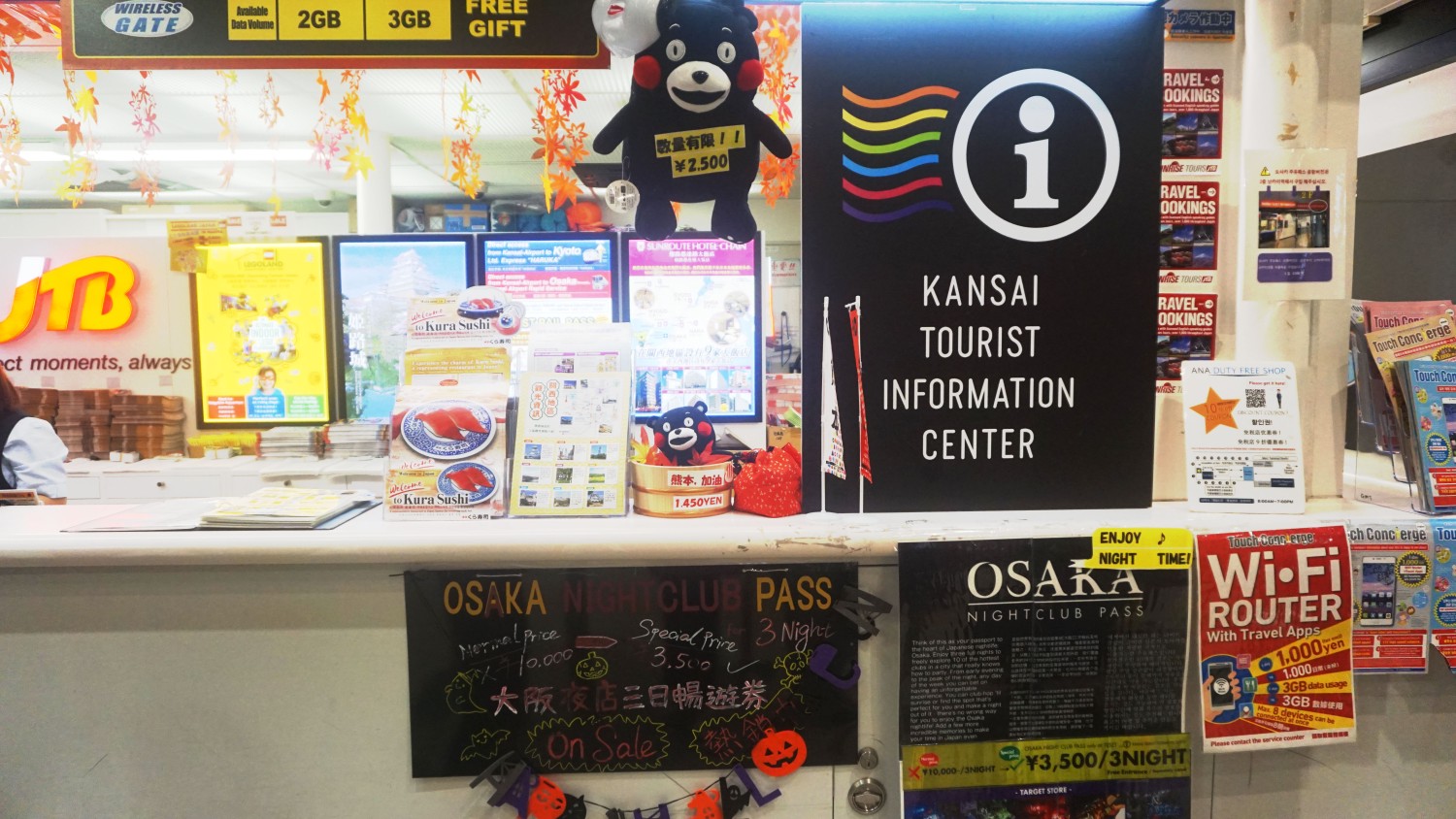 จำเวลาเป๊ะๆไม่ได้ว่าเครื่องลงกี่โมง รู้เค่ว่าเลทครับ คือเครื่องเลท 1 ชั่วโมงจาก ฟิลิปปินส์มาคันไซ รู้แค่ว่ามาถึงสนามบินคันไซก็คือสองทุ่มกว่าๆ ก็คือรีบลงเครื่อง เอากระเป๋า ตรงไปซื้อบัตร Kansai Thru Pass ที่ Kansai Travel Desk ชั้น 1 อาคารผู้โดยสาร ราคาก็ตามนี้