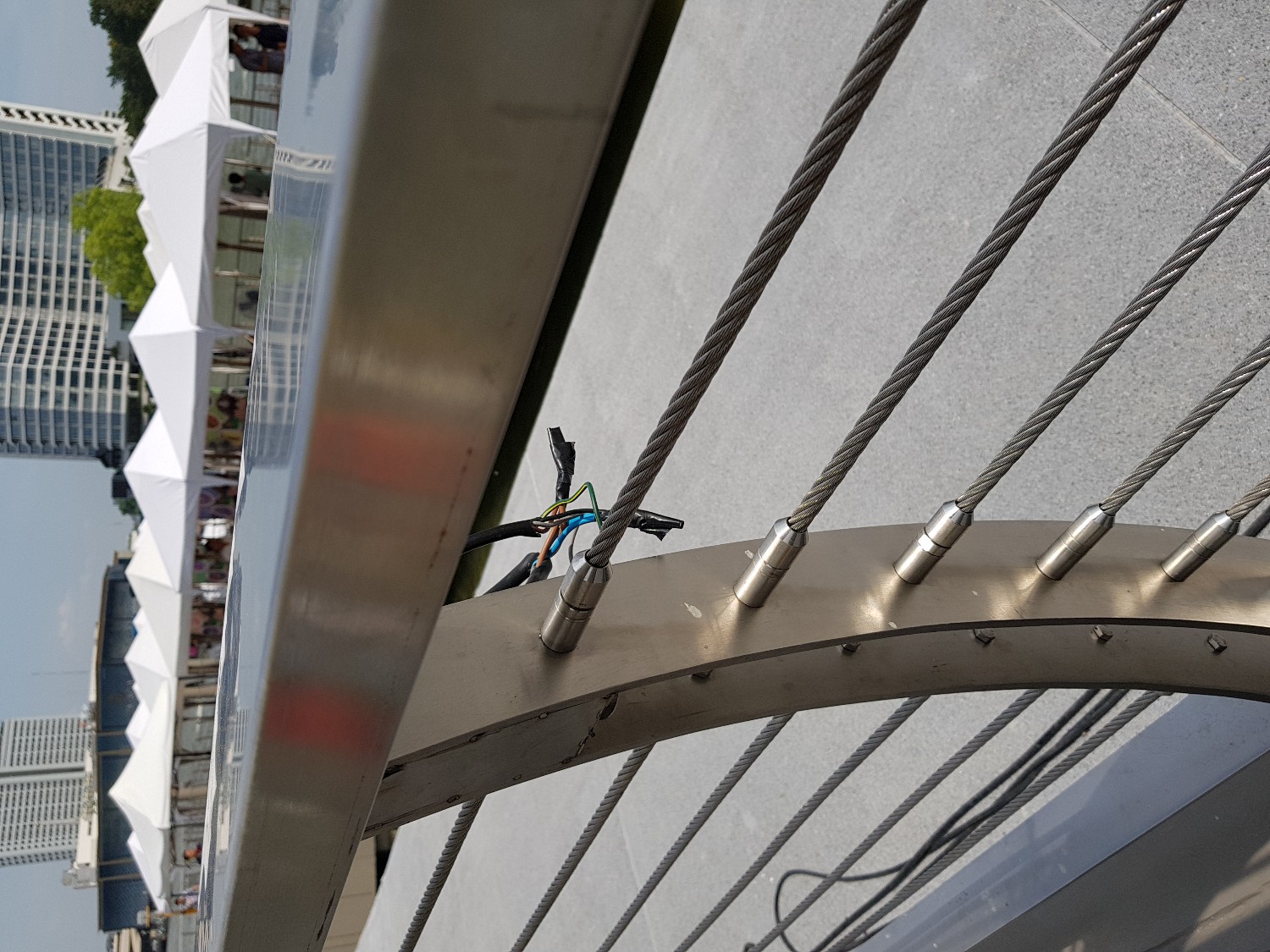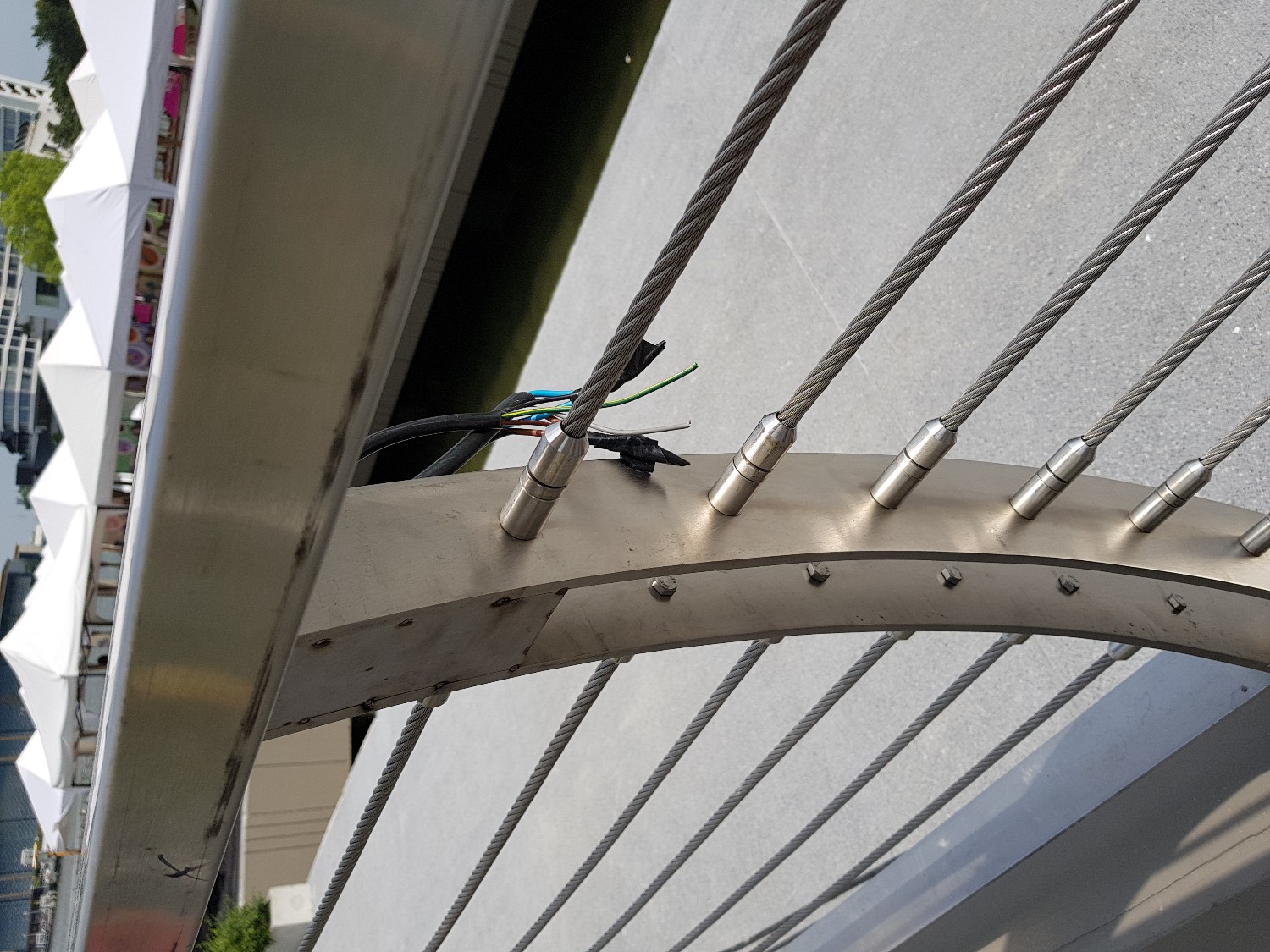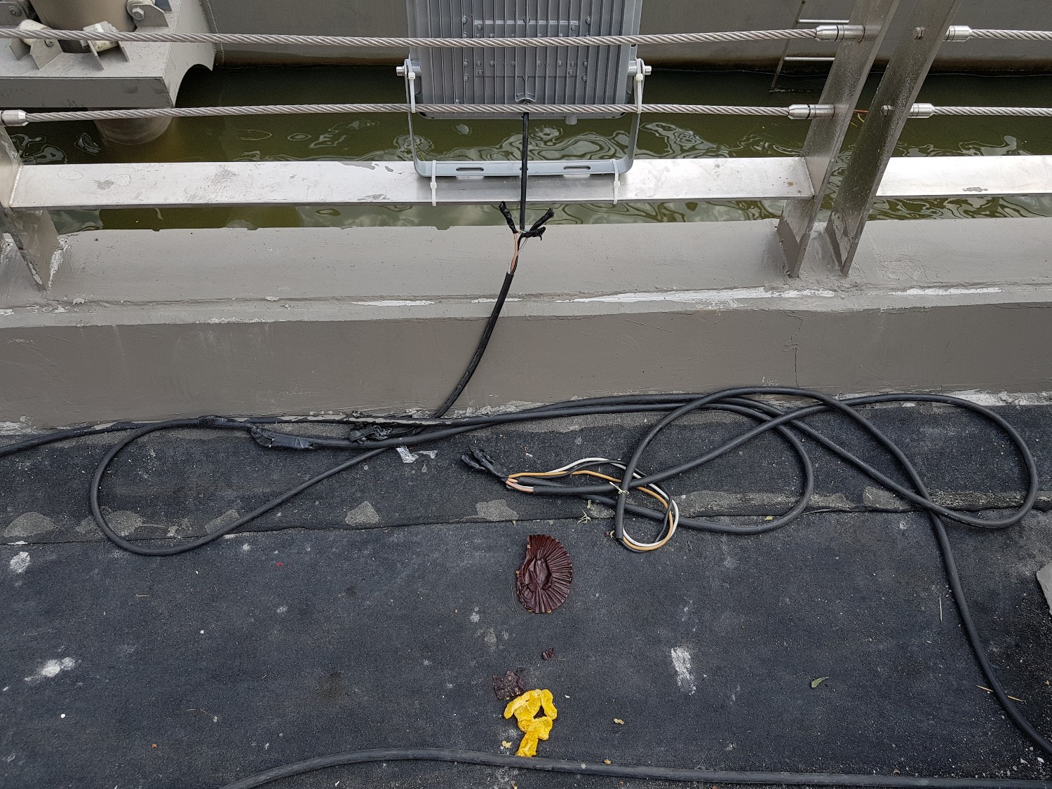 ตามภาพ หากมีสายไปมีการเกี่ยวหรือขยับตรงจุดต่อ ไฟน่าจะรั่วได้แน่นอน ผมคิดว่าทางโครงการก็คงจะบอกว่า จุดตรงนี้ได้มีการตัดไฟหรือไม่มีความอันตราย แต่เท่าที่ผมมอง หากมีการเชื่อมและพันสายแบบนี้ ก็ต้องมีการทดลองจ่ายไฟ หากพลาดแล้วลืมตัดไฟ ฝนตกหรือมีความชื่น มันคงมีความเป็นไปได้ว่าจะเกิดความอันตรายได้
