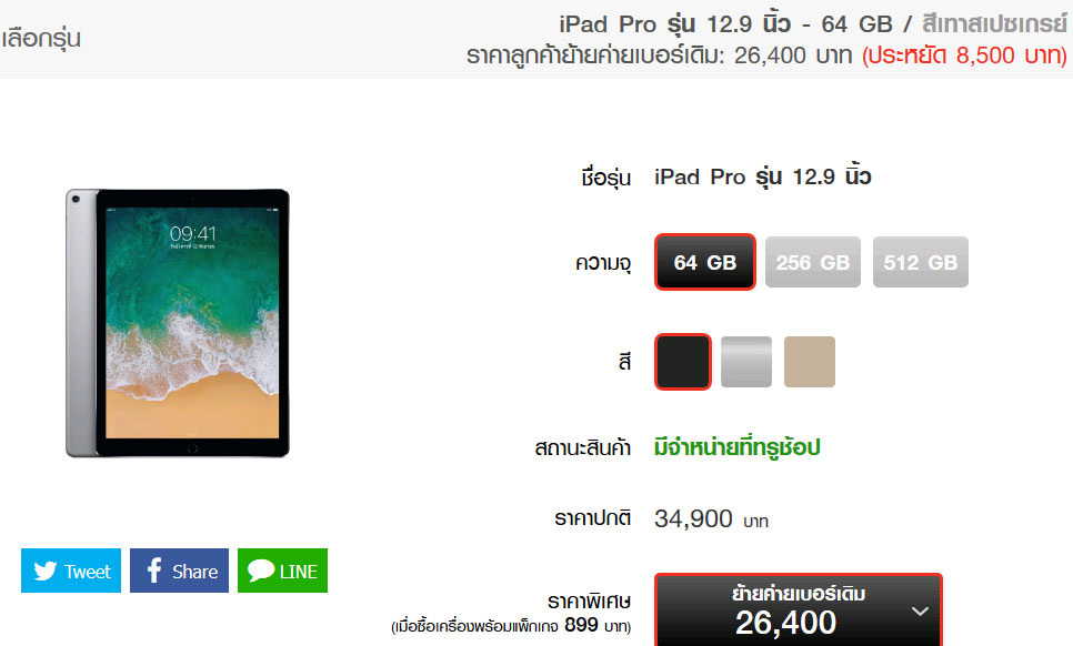 iPad Pro 12.9 ราคาเครื่องเปล่า True 34,900 กับ Apple Store 40,900 รุ่นเดียวกันหรือไม่ครับ?