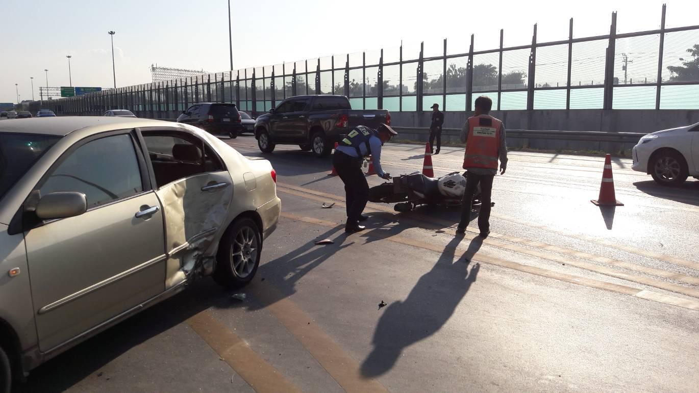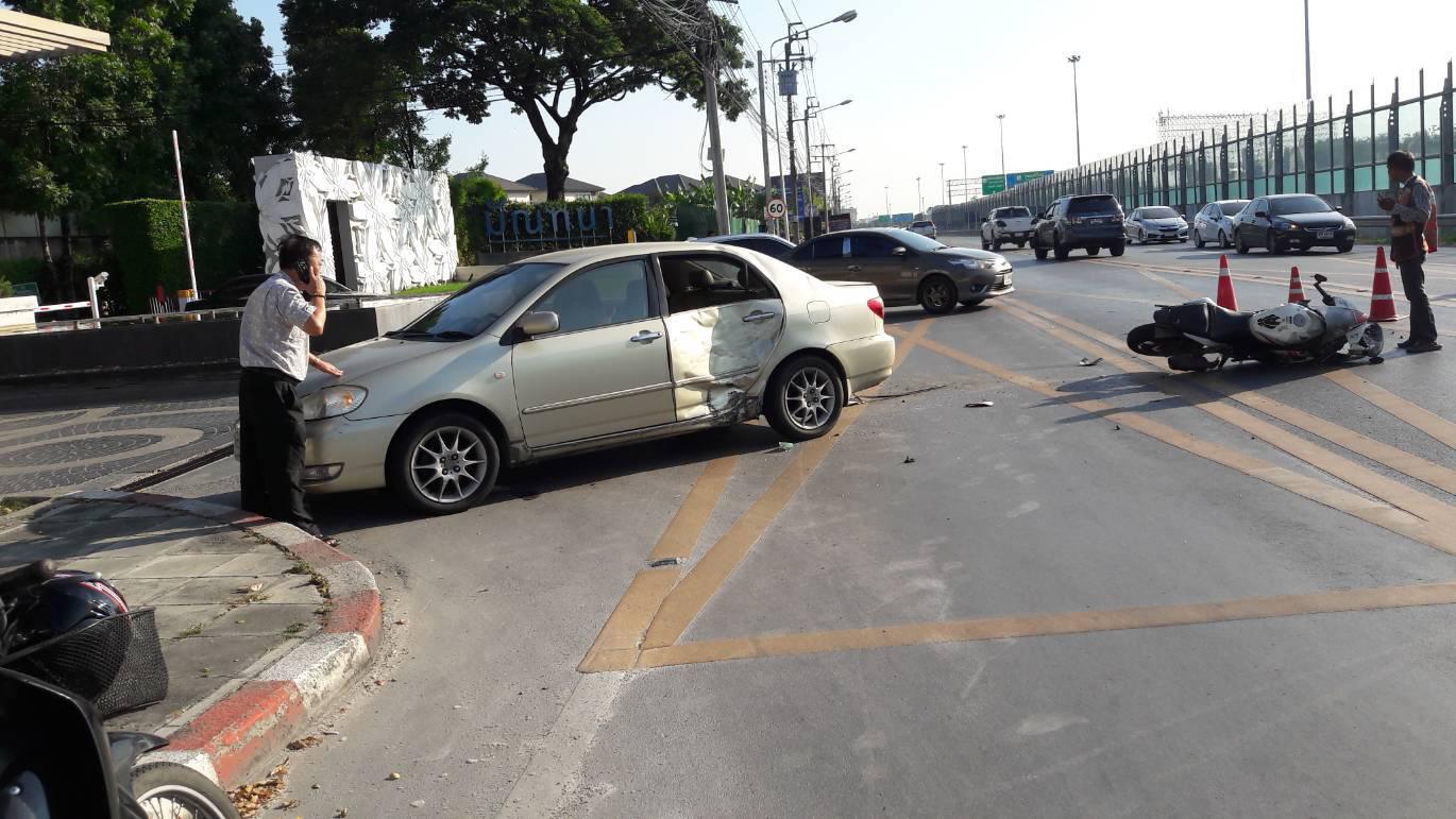 กลับรถในจุดที่ห้ามกลับรถแล้วมอเตอร์ไซค์ชนท้าย