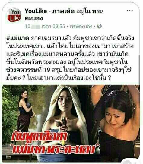 เมื่อเขมรบอกว่าตำนานแม่นาคเกิดขึ้นจริงที่พระตะบองในประเทศกัมพูชาไม่ใช่เกิดขึ้นในประเทศไทยและกัมพูชาสร้างภาพยนตร์และละครรีเมคเรื่องแม่นาคมาหลายครั้งแล้ว