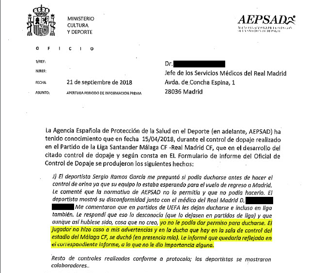 - Der Spiegel เลยออกมาตอบโต้การปฏิเสธ ด้วยการเผยแพร่เอกสาร ซึ่งเป็นจดหมายจาก Spanish Anti-Doping Agency ถึงรีลมาดริด