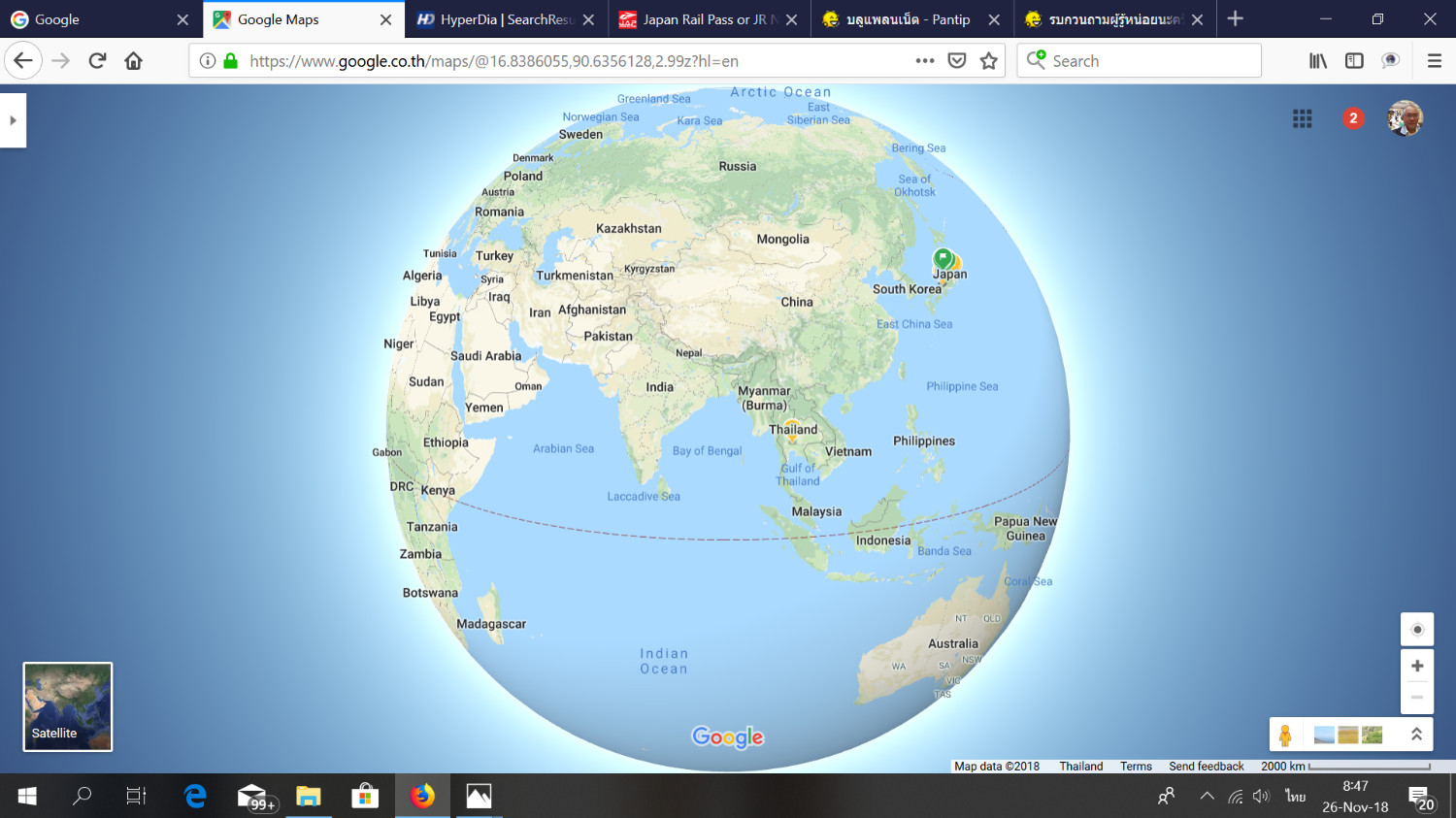 ผมเข้า google maps แล้วซูมเอาท์ออกมาเรื่อยๆ เหมือนเราบินสูงขึ้นมา