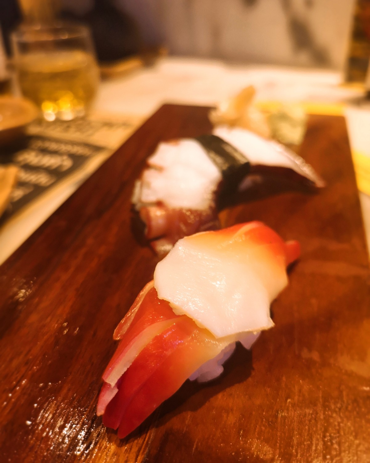 นอกจากเนื้อปลาแซลมอนแล้ว เมนูที่สั่งเพิ่ม ก็มีซูชิหอยปีกนก และปลาหมึกยักษ์ สดมากจนต้องร้อง.. "สุโก้ยยย" เลยทีเดียว (สำหรับรายการอาหารถ้าชำระเป็นเงินสด มีส่วนลดเพิ่มอีกด้วยนะคะ)ดีงามอ่าา