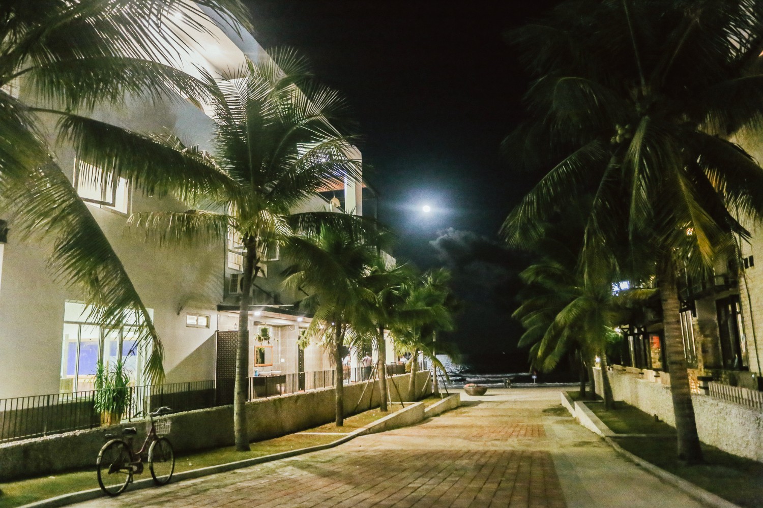 บรรยากาศยามค่ำคืนของหาด My Khe จะมีคนมานั่งเล่นกันเยอะมากๆ ลมเย็นเงียบสงบ