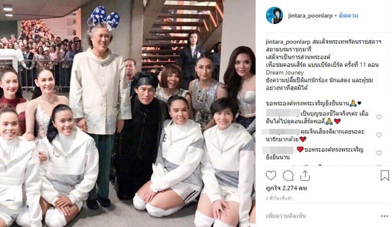 ในไอจี jintara_poonlarp โพสต์ภาพพร้อมข้อความว่า สมเด็จพระเทพรัตนราชสุดาฯ สยามบรมราชกุมารี เสด็จฯเป็นการส่วนพระองค์ เพื่อชมคอนเสิร์ต แบบเบิร์ดเบิร์ด ครั้งที่ 11 ตอน DreamJouney ยังความปลื้มปีติแก่นักร้อง นักแสดง และผู้ชม อย่างหาที่สุดมิได้ ขอพระองค์ทรงพระเจริญยิ่งยืนนาน