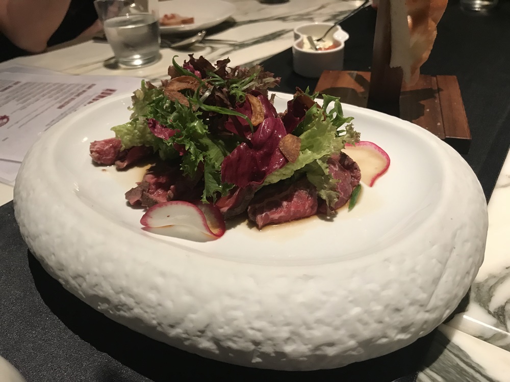 ยำเนื้อ แองกัส เปรี้ยว อร่อยสดชื่น จานนี้ เนื้อมาค่อนข้างดิบ แต่อร่อยชอบ