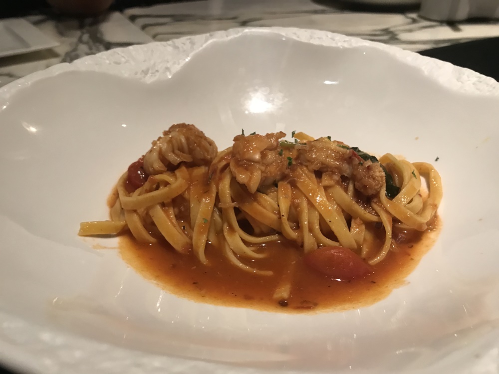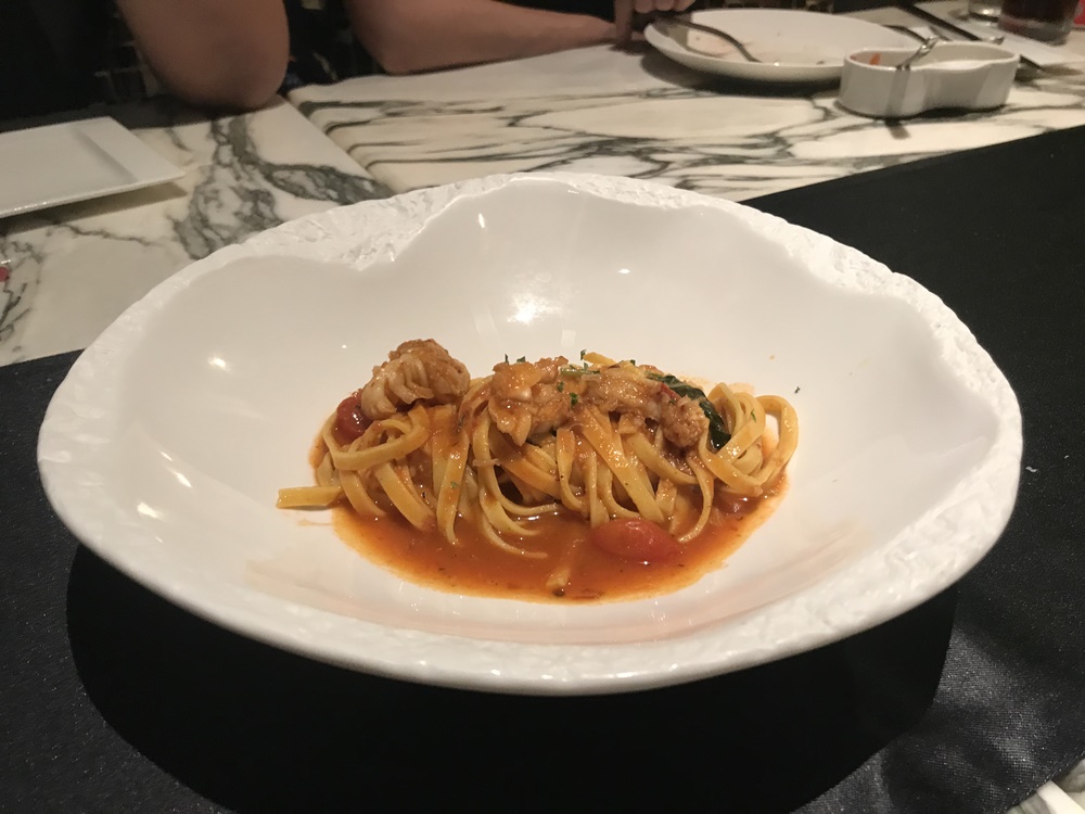 เส้นเฟสตูชินี่ ผัดกับ ล้อบสเตอร์ และปู รสอ่อน ๆ พอทานได้ แต่ถ้าเทียบกับราคา ราคาแรงไปหน่อย