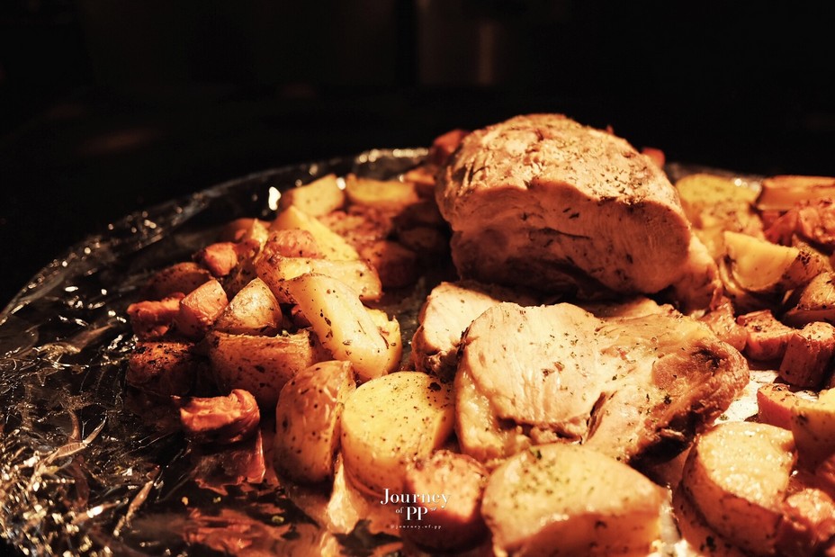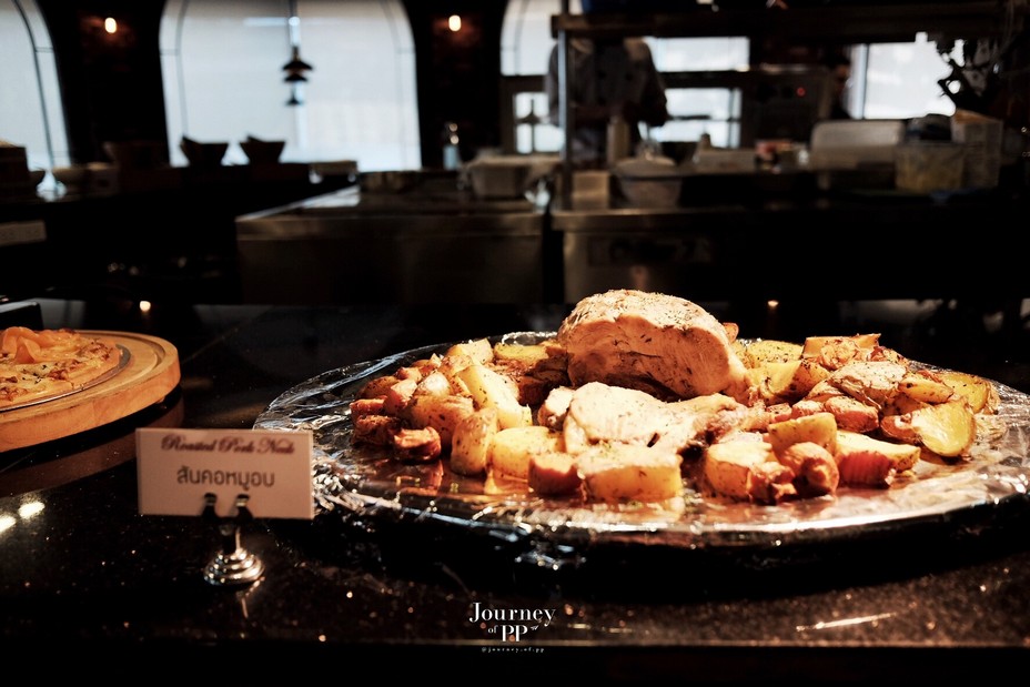 เริ่มกันที่เนื้อสัตว์ ก็จะมีสันคอหมูอบ ถ้าเราจะเอา บอกเชฟได้เลย เดี๋ยวเค้าตัดให้