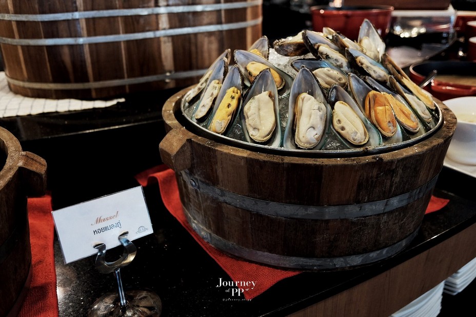 มาถึงส่วน Seafood แบบเสิร์ฟเย็น ก็จะมีหอยหวาน กุ้ง แล้วก็หอยแมลงภู่นิวซีแลนด์