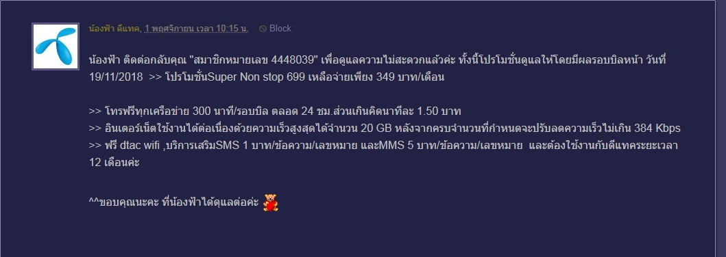 หลังจากเคลียร์เสร็จ น้องดี ก็เคลียร์ให้เรียบร้อย หวังว่าจะไม่มีปัญหา ตอนจ่ายเงิน รอบบิลหน้านะคะ !!! เตือนไว้เป็นอุทาหร โทรเปลี่ยนโปรแล้ว อย่าลืม