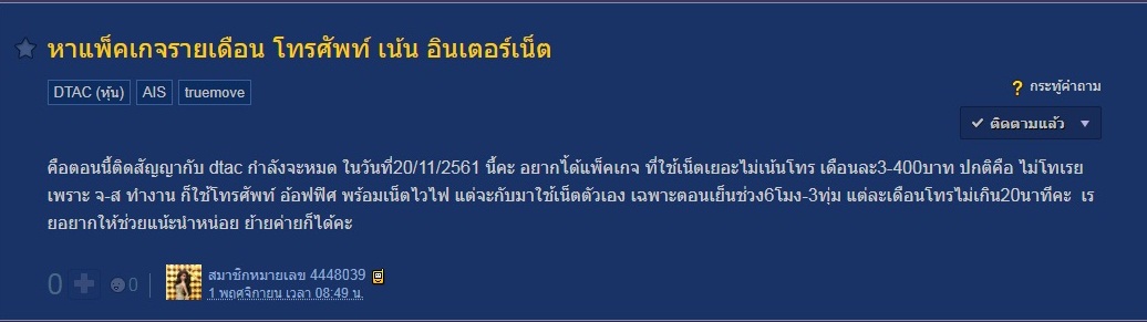 ว่ามีการเปลี่ยนแปลงให้ตามที่ตกลง พอถึงวันนี้ วันที่ 27/11/2561 เกิดการเอ๊ะใจ โทรเช็คก่อนดีกว่า ว่าโปรเราเปลี่ยนหรือยัง