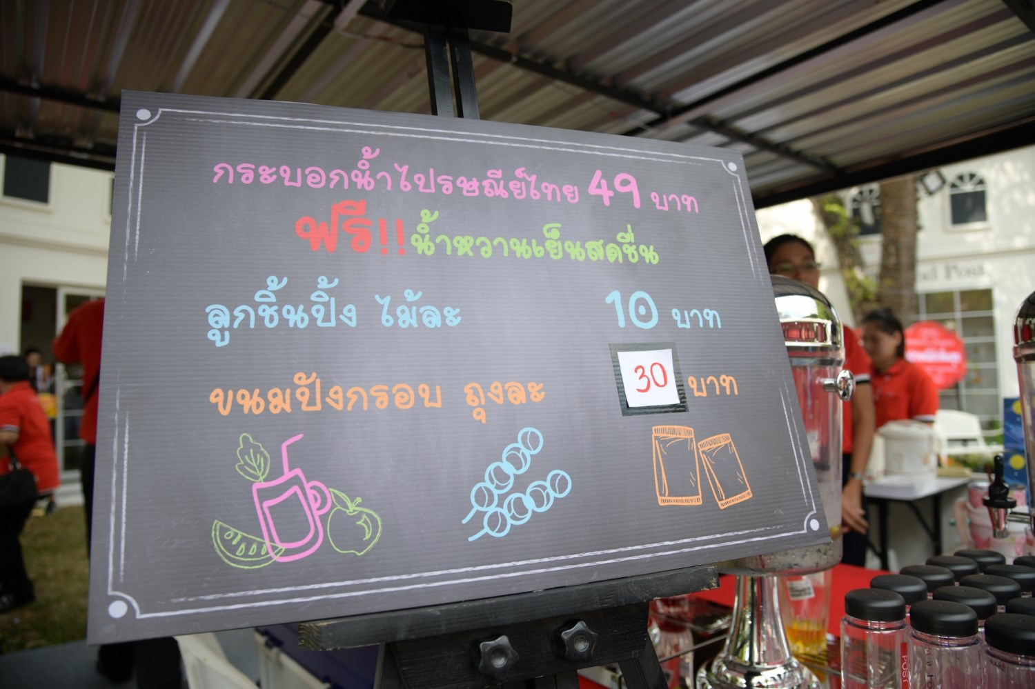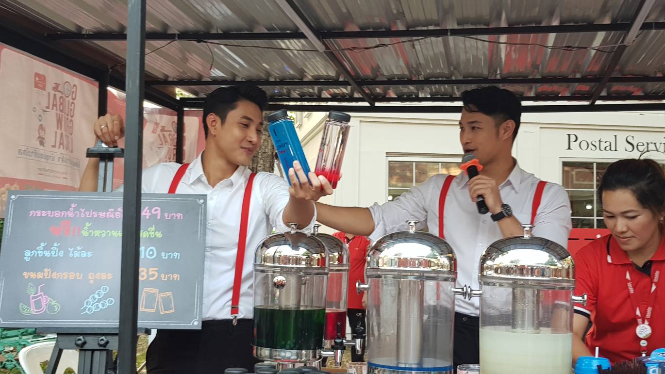 วนเวียนถ่ายรูปไป โพสไป หน้าหนาวแต่อากาศร้อนนะจ๊ะ แอบเล็งพ่อค้าไว้นาน ขออุดหนุนเค้าซะหน่อย อิอิ จัดไปจ้า น้ำแดงชื่นจายย (แต่ในรูปไม่ใช่ของเราน้า.. ระหว่างรอคิวเลยแอบถ่ายมา แฮร่ๆ) ซื้อกระบอกแถมน้ำนะจ๊ะ ขอเลือกกระบอก “Post it your way” เพราะชอบประโยคนี้มว้าก ว่าจะซื้อให้ครบเซ็ทไปฝากพี่ฝากน้อง ราคาเบาๆ 49 บาทเอง.. แล้วนี่หิวไง ไม่อยากไปไหนไกล (รอเล่นเกม “ล้วงไข่”) ซื้อลูกชิ้นร้านนี้แหละ ถ้าแถมพ่อค้าด้วยจะดีมากข่ะ พ่อค้าแซ่บเฟร่ออออออ