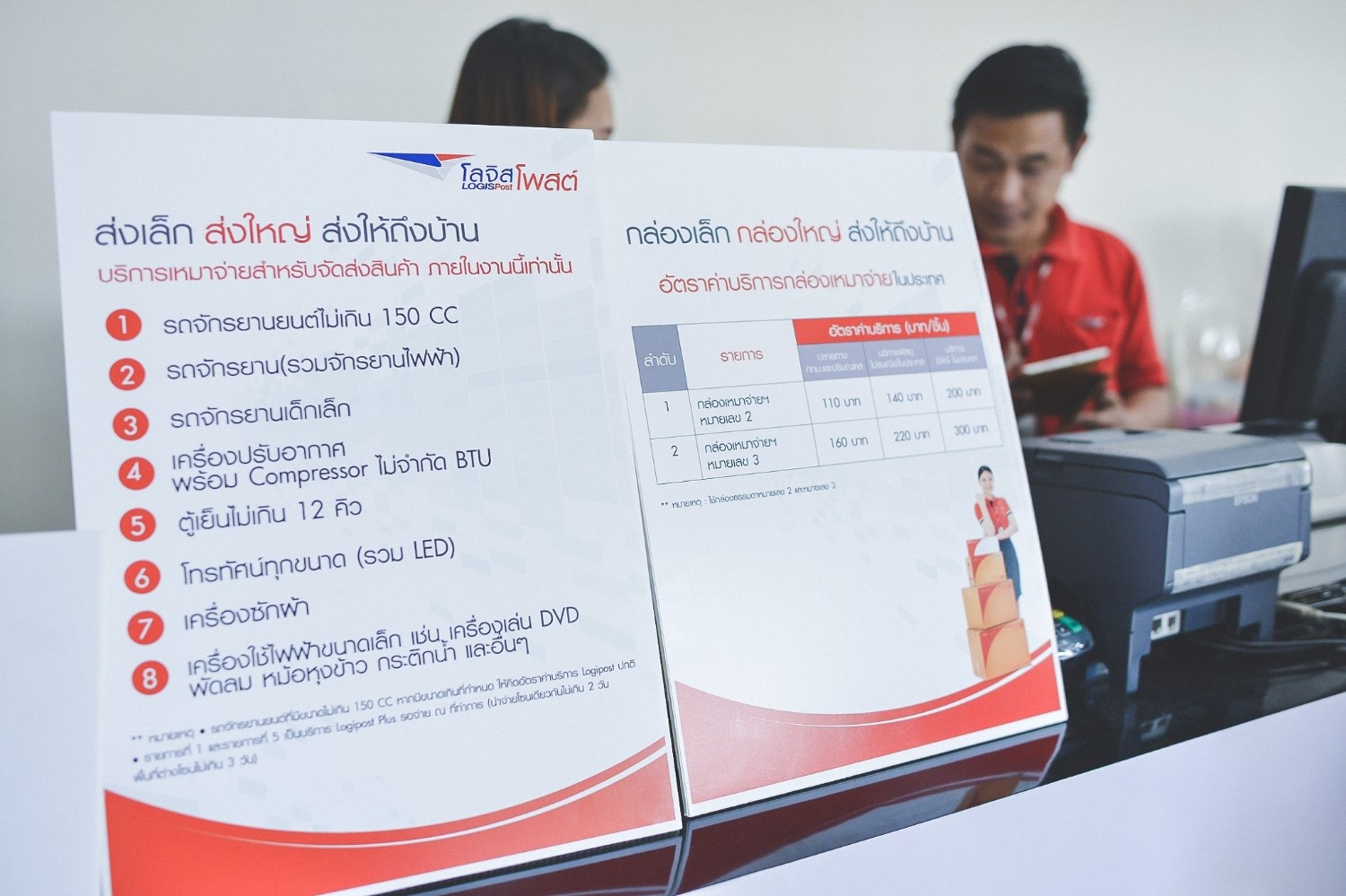 ยัง ยังไม่หมด.. กวาดสายตามองไปรอบๆร้าน เห็นเด็กเข็นจักรยานเข้ามาในร้าน หืมมม... น้องงงง จะมาขี่เล่นในนี้ไม่ด้ายย (บ้าเหรออ) จริงๆแล้วน้องเค้ามาฝากส่งไปบ้านนั่นเอง จะส่งเล็ก ส่งใหญ่ พร้อมส่งตรงถึงหน้าบ้าน (สโลแกนนี้อยู่หน้าเค้าเตอร์เลยจ่ะ) พี่เสื้อแดงบอกว่า.. หากใครร่วมสนุกลุ้นชิงโชคตามบูธต่างๆ แล้วได้ของรางวัลชิ้นโต เช่น รถจักรยาน เครื่องปรับอากาศ โทรทัศน์ ฯลฯ ก็สามารถนำมาฝากส่งได้ที่บูธไปรษณีย์ ด้วยบริการ “โลจิสโพสต์” ฝากส่งได้ ไม่ต้องขนกลับ...//(สาระ)
