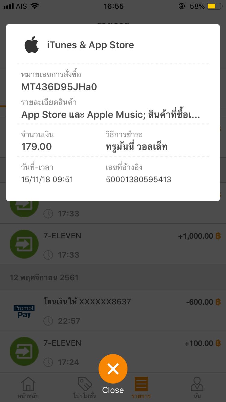 ซื้อของใน App Store เเต่ทำไมยอดเงินใน True Money Wallet มันไม่ลดอ่ะคับ ใครมีวิธีเเก้ยังไงบ้างคับ