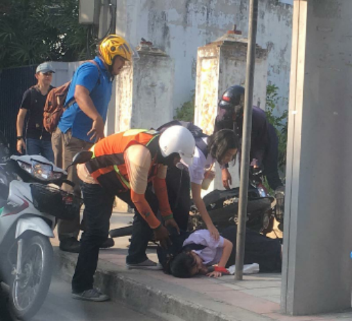 วานนี้ (26 พ.ย.) ผู้ใช้งานทวิตเตอร์ @EmaEmika ได้โพสต์ภาพอุบัติเหตุบนทางเท้า บริเวณปากซอยลาดพร้าว 69 มีนักเรียนหญิงรายหนึ่งบาดเจ็บ เนื่องจากถูกรถจักรยานยนต์ขับชนขณะกำลังเดินบนทางเท้า หลังจากที่เรื่องร