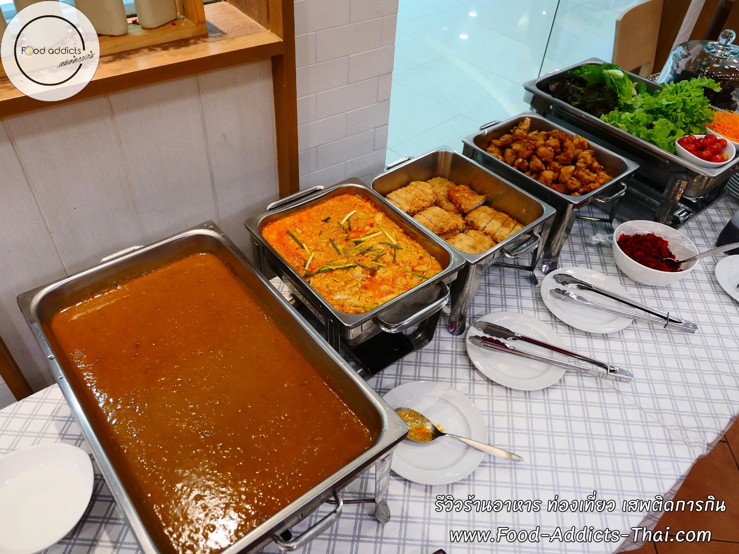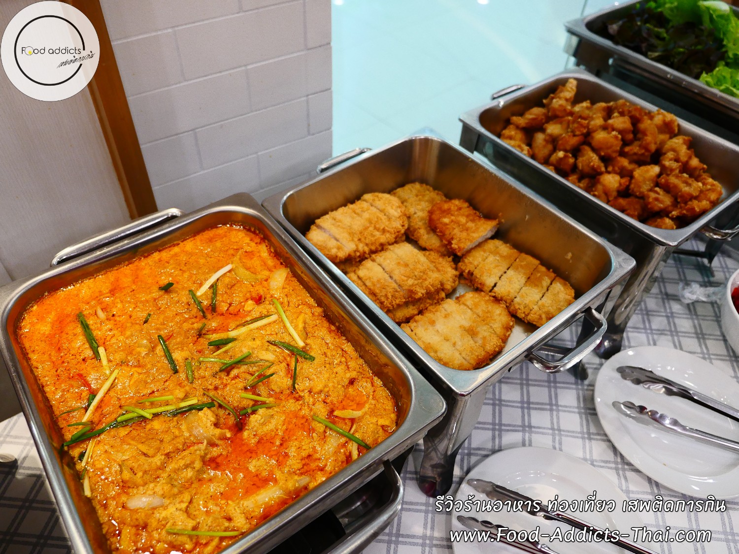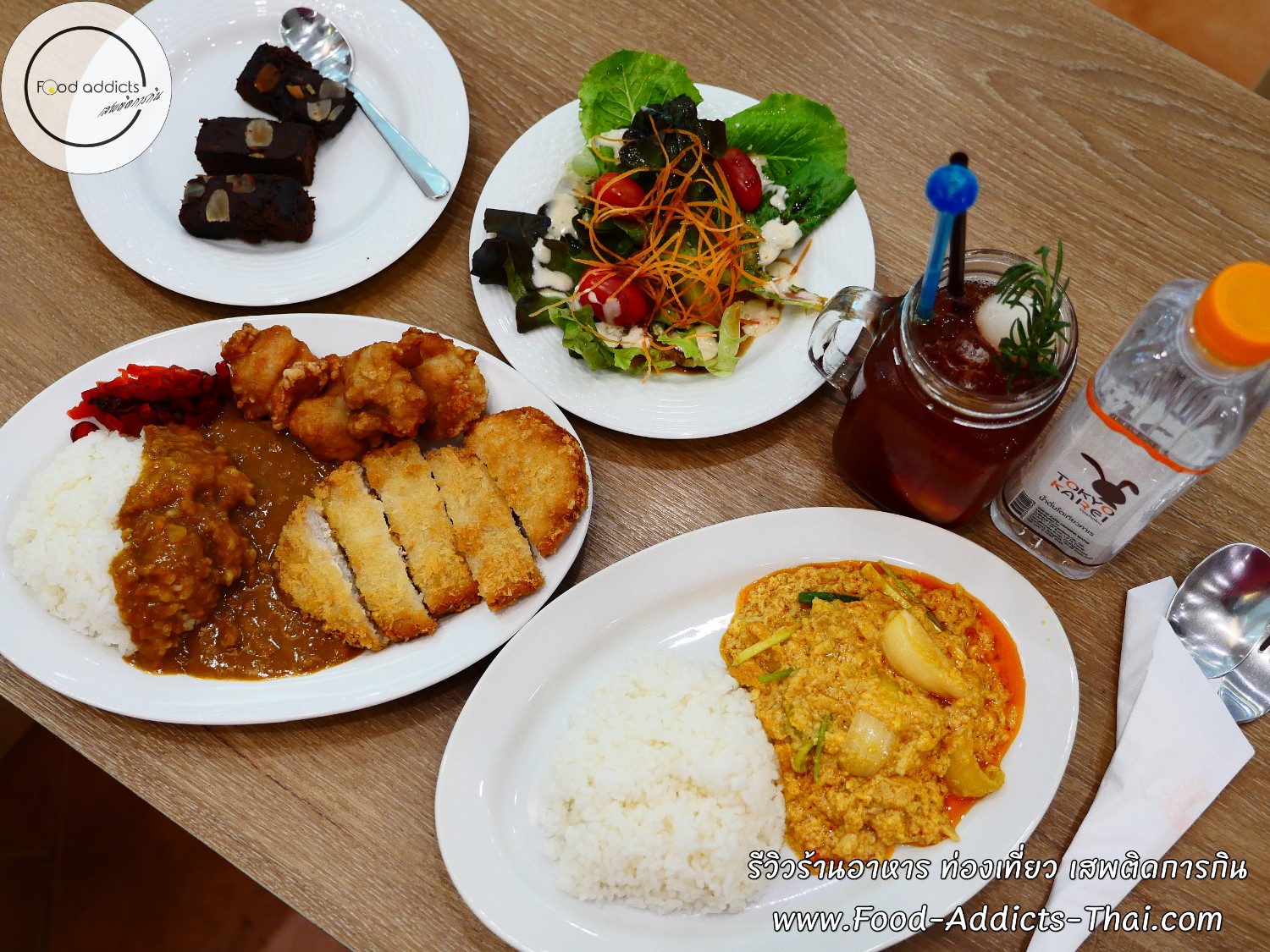 ทางร้านมีเมนูให้เลือกทานทั้งแบบ A La Carte และ Buffet ในไลน์อาหารนั้นก็ไม่ได้มีเกินตามคำโฆษณาแต่อย่างใด ไล่เรียงไปเลยแกงกะหรี่สไตล์ญี่ปุ่นแบบไม่มีเนื้อสัตว์ ถัดมาเป็นปูผัดผงกะหรี่ ที่เรียกได้ว่าหาเนื้อปูไม่เจอ แต่กลิ่นหอมปูนะ สงสัยว่าจะผสมกับไข่แล้วผัดจนเป็นเนื้อเดียวกันหมดแล้ว หมูทงคัตสึทอดชิ้นใหญ่ทอดมาใหม่ๆ ส่วนจะชุบแป้งหนาไหม ค่อยไปดูบนโต๊ะ ข้างกันเป็นไก่คาราอาเกะชิ้นใหญ่ดูน่ากินมาก มีเครื่องเคียงเป็นผักดองทานกับแกงกระหรี่ ตามด้วยสลัดผักที่ผักดูสดมาก มีน้ำสลัดให้ 2 สูตร ทั้งสูตรแบบญี่ปุ่น และสูตรงาขาว ปิดท้ายด้วยบราวนี่ที่สีดูเข้มข้นดี เท่าที่มองไลน์อาหารของที่นี่ ถ้าเทียบราคาที่จ่ายไปแค่ 199 บาท ก็คุ้มราคาแล้วนะ (ปัจจุบันมีปรับไลน์อาหารให้เก็บความร้อนดีขึ้น และเพิ่มกุ้งคัตสึทอดมาด้วยนะ แต่ราคาเท่าเดิม)