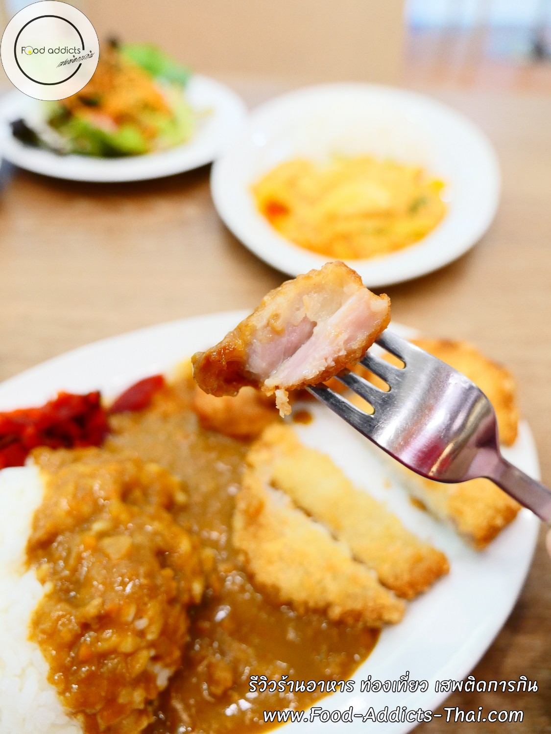 ตักทุกอย่างมาชิมอย่างละนิดหน่อย เริ่มจากข้าวแกงกระหรี่ของที่ร้าน เรียกได้ว่ารสแบบเบสิค มีความเข้มข้น กลิ่นของแกงกระหรี่และความเผ็ดอยู่ในระดับที่เรียกว่า ทานได้ทั้งเด็กและผู้ใหญ่ รสชาติกำลังดี ใครทานเผ็ดหน่อยที่โต๊ะก็มีพริกป่น พริกไทย เกลือ ให้ปรุงรสได้ตามใจ ข้าวที่ใช้เป็นข้าวญี่ปุ่นจริงๆ ไม่ได้ผสมข้าวไทย เม็ดเล็กอ้วนกลม ทานคู่กับผักดองรสกรอบหวานยิ่งเข้ากัน ตัวทงคัตสึสัดส่วนของเนื้อหมูกับแป้งกำลังดี ไม่ได้หนาจนน่าเกลียด เนื้อหมูนุ่มทอดมากำลังดี ไก่คาราเกะก็อร่อยมีรสเค็ม หอมกลิ่นซอสมาแล้วในตัว สลัดผักสดกรอบ มะเขือเทศเนื้อแน่น น้ำสลัดรสชาติกลมกล่อม จานที่สงสัยมากที่สุดอย่างปูผัดผงกระหรี่ ที่หาเนื้อปูไม่เจอ รสชาตินั้นดีมาก เรียกได้ว่าเข้มข้น รสหวานมันกลมกล่อม หอมกลิ่นผงกระหรี่และปู กลิ่นปูชัดเจนมาก ในราคา 199 มีให้กินแถมรสชาติดีขนาดนี้ เรียกว่าเกินคาดครับ แต่ทานไปนานๆก็แอบเค็มอยู่เหมือนกันนะ