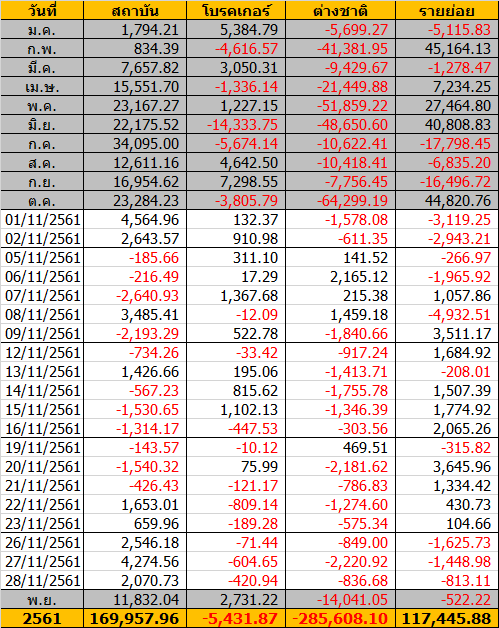 Sinthorn Summary 28/11/2561 : ต่างชาติขายสุทธิ -836.68 ลบ.