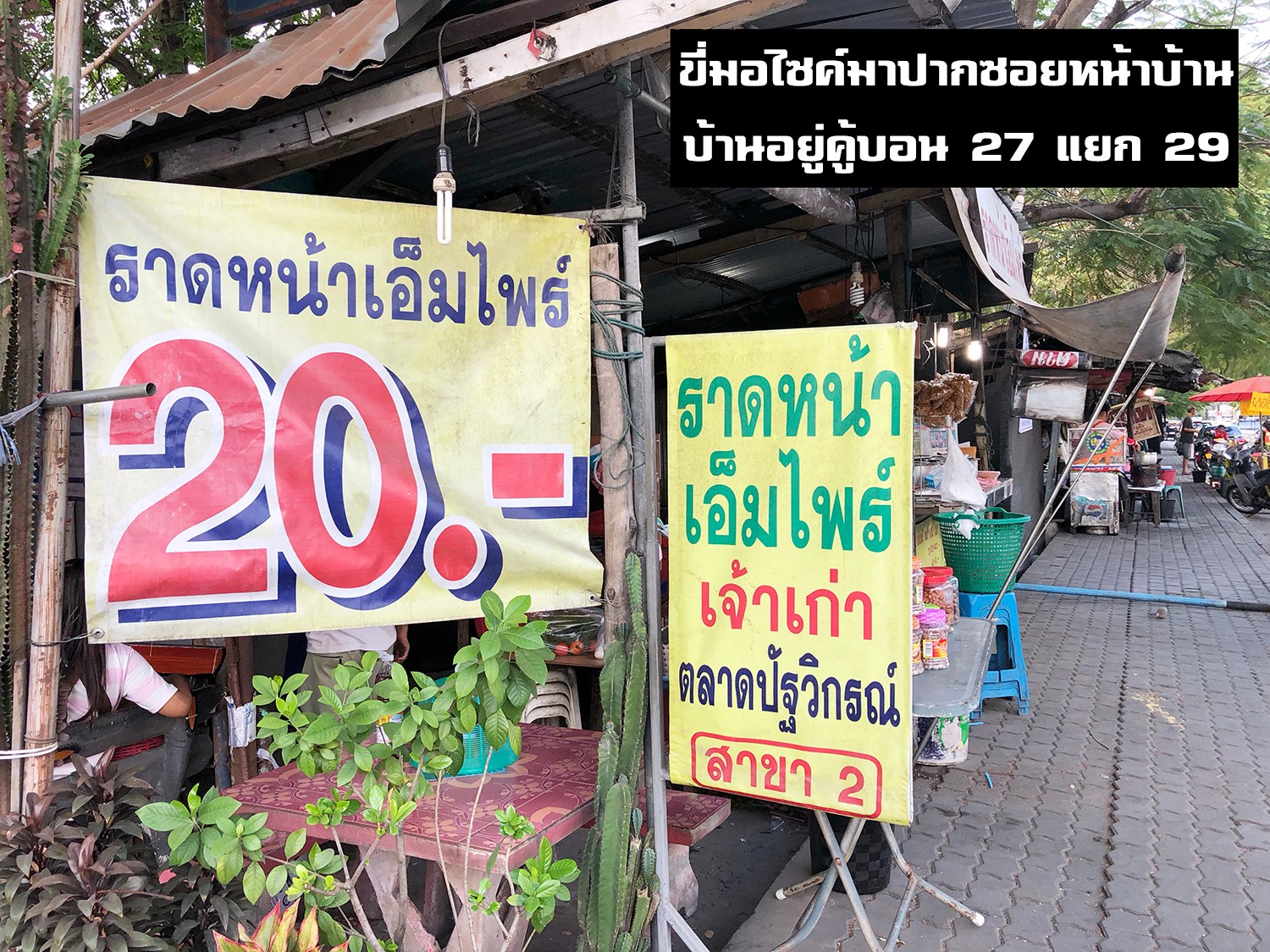 ร้านอยู่หน้าปากซอยคู้บอน 27 แยก 29 ครับ เป็นร้านที่คนส่งของ แท็กซี่ มอไซค์วิน วัยรุ่น หลากหลายอาชีพชอบมานั่งกินกัน ราคาป้ายที่เขาเขียนไว้คือ 20 บาทครับ แต่ปกติก็คงกินไม่อิ่ม แต่ผมมีวิธีที่ทำให้กินอิ่ม
