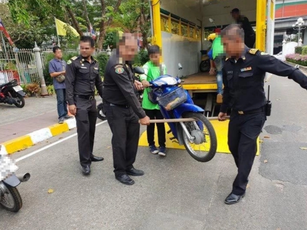 นนทบุรี จับจริง-ยกจริง จักรยานยนต์ขับ-จอดรถ บนทางเท้า