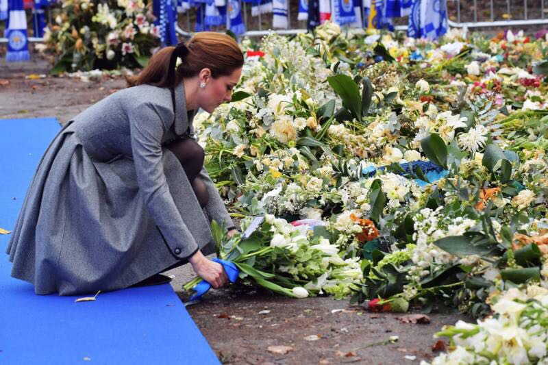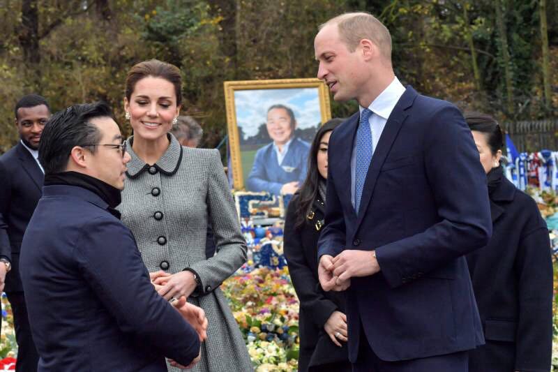 แคทเธอรีน ดัสเชสแห่งเคมบริดจ์ พระชายา เสด็จทรงวางช่อดอกไม้เพื่อแสดงความอาลัยต่อการเสียชีวิตของ นายวิชัย ศรีวัฒนประภา จากอุบัติเหตุเฮลิคอปเตอร์ตก โดยมีนางเอมอร ศรีวัฒนประภา ภริยา และนายอัยวัฒน์ ศรีวัฒนประภา บุตรชาย รวมถึงโคลด ปูแอล ผู้จัดการทีมคนปัจจุบันของทีม และเหล่าบรรดาผู้เล่นทีมเลสเตอร์ซิตี้ เฝ้ารับเสด็จ