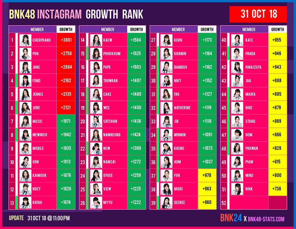 # 16 อันดับ เมมเบอร์ BNK48& CGM48 ที่มียอด FB/IG เติบโตสูงสุด ในเดือนตุลาคม 2564 Cr.ข้อมูลจาก https://www.facebook.com/1611943758853744/posts/449