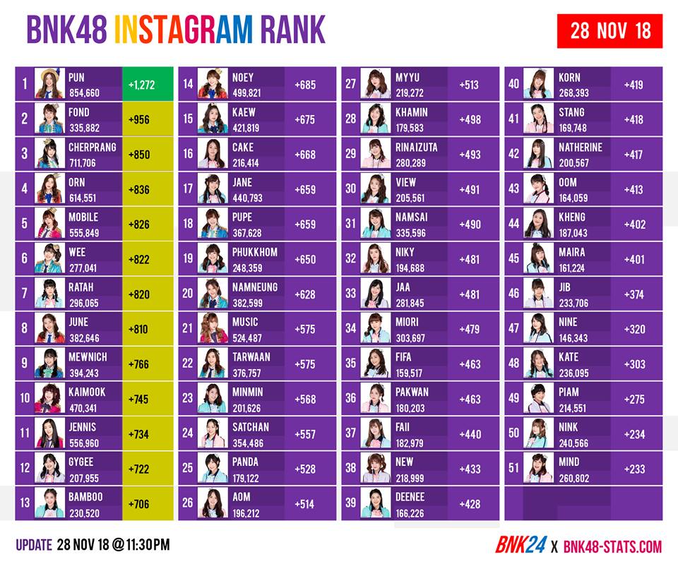 # 16 อันดับ เมมเบอร์ BNK48 + CGM48 ที่มียอด FB/IG เติบโตสูงสุด ในเดือนตุลาคม 2564