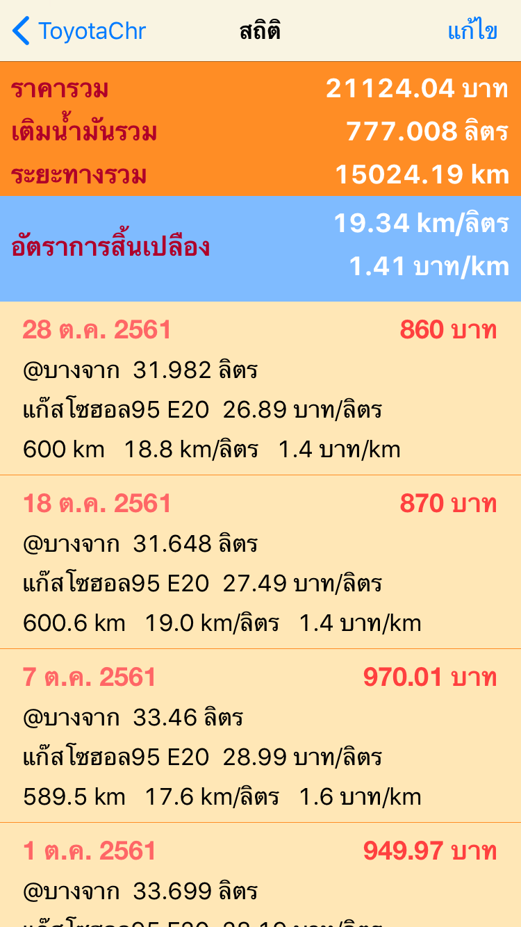 รถที่ใช้ Toyota Chr hv mid ออกรถมาประมาน 7 เดือนใช้ระยะทางเกือบๆ 2 หมื่นโล ตัวคนขับ น้ำหนัก 130 โล รถมันอาจจะหนักเลยไม่ประหยัดเท่าที่ควร น้ำมันที่รถรองรับ E20- 95 แต่ของผมเติมแต่ E20 คุ้มตังสุดแล้ว วิธีการทดสอบคือจดลง app เติมน้ำมันแค่พอหัวจ่ายตัดปัดเศษให้เลขกลมๆ