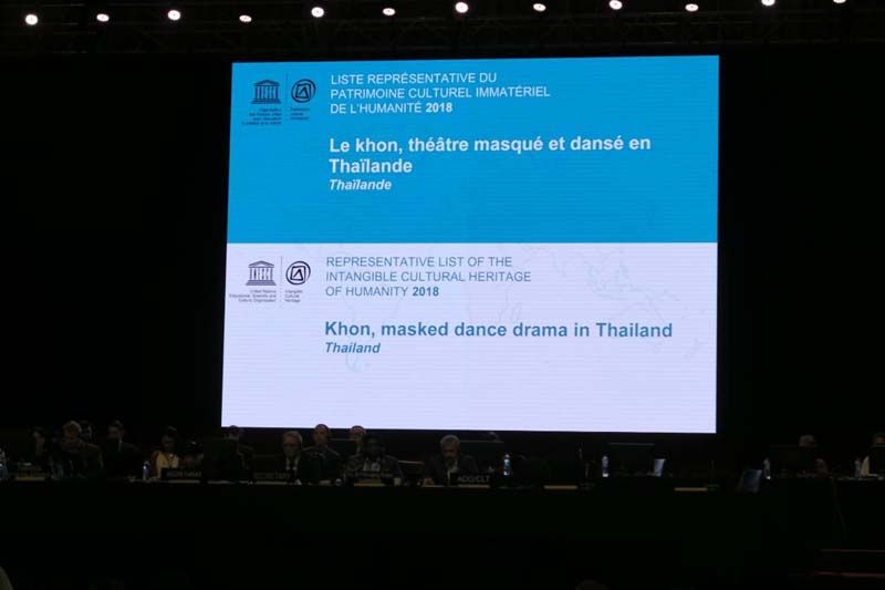 ด้านนายวีระ โรจน์พจนรัตน์ รมว.วัฒนธรรม(รมว.วธ.) เปิดเผยว่า ได้รับรายงานว่าผลการประชุมคณะกรรมการร่วมระหว่างรัฐบาลเพื่อการสงวนรักษามรดกวัฒนธรรมที่จับต้องไม่ได้ของยูเนสโก ครั้งที่ 13 ระหว่างวันที่ 26 พฤศจิกายน – 1 ธันวาคม 2561 ณ เมืองพอร์ตหลุยส์ สาธารณรัฐมอริเชียส ซึ่งมีผู้แทนจากประเทศภาคีอนุสัญญาว่าด้วยการสงวนรักษามรดกวัฒนธรรมที่จับต้องไม่ได้ขององค์การการศึกษา วิทยาศาสตร์และวัฒนธรรมแห่งสหประชาชาติ (ยูเนสโก) เข้าร่วมประชุม 181 ประเทศ โดยที่ประชุมได้พิจารณาและประกาศให้ขึ้นบัญชี การแสดงโขนในประเทศไทย “Khon masked dance drama in Thailand” ในรายการตัวแทนมรดกวัฒนธรรมที่จับต้องไม่ได้ของมนุษยชาติอย่างเป็นทางการ