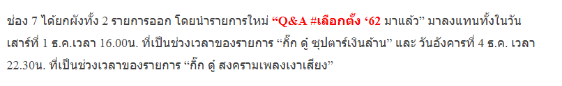 กิ๊กดู๋ ย้ายรายการออกจากช่อง 7 กระทันหันโดยไม่ได้แจ้งไว้ล่วงหน้าเป็นผลให้ช่อง 7 ลงดาบ กิ๊กดู๋ พ้นจากผังเดือน ธ.ค.