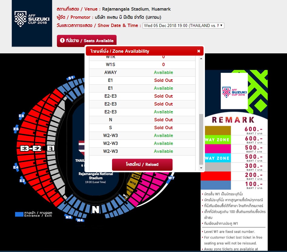 รายงานสถานะตั๋ว AFF2018 @สนามราชมังคลา [5ธค61] Day4