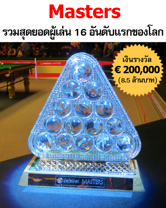 มาสเตอร์ส (Masters) เป็นรายการที่จัดขึ้นตั้งแต่ปี 1975 ณ ลอนดอน ประเทศอังกฤษ (เริ่มแข่ง 13-20 ม.ค. 62) ถือเป็นอีกหนึ่งรายการใหญ่ที่เก่าแก่ยาวนานที่สุด รองจากรายการ เวิลด์ สนุกเกอร์ แชมเปียนชิป (World Championship) และรวมอยู่ในสุดยอด "ทริปเปิล คราวน์"