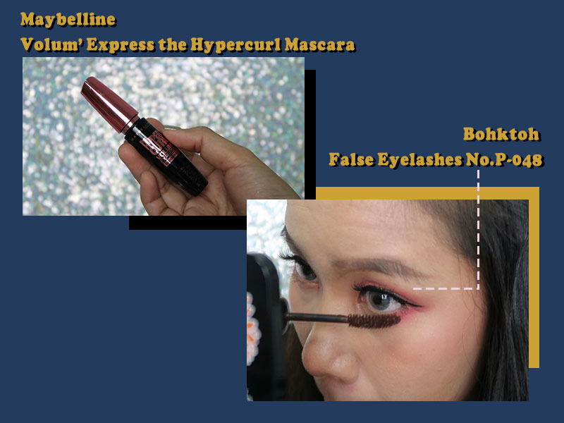 ยังไม่จบกับดวงตา เราไม่ดัดขนตาค่ะเพราะขนตาเราสั้น 555 เราติดขนตาปลอมไปเลย เลือกใช้ขนตาที่ฟูๆ หวานๆหน่อย เราใช้ Bohktoh False Eyelashes No.P-048 ค่ะ ส่วนขนตาล่าง ก็ปัดให้ฟูเลย แต่เราเลือกใช้มาสคาร่าสีน้ำตาล ที่เอาปัดคิ้วเมื่อกี้แหล่ะค่ะ มาปัดให้ฟูๆ ด้วยความสีน้ำตาลจะทำให้ตาดูละมุน ดูนัวมากขึ้น