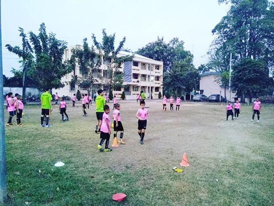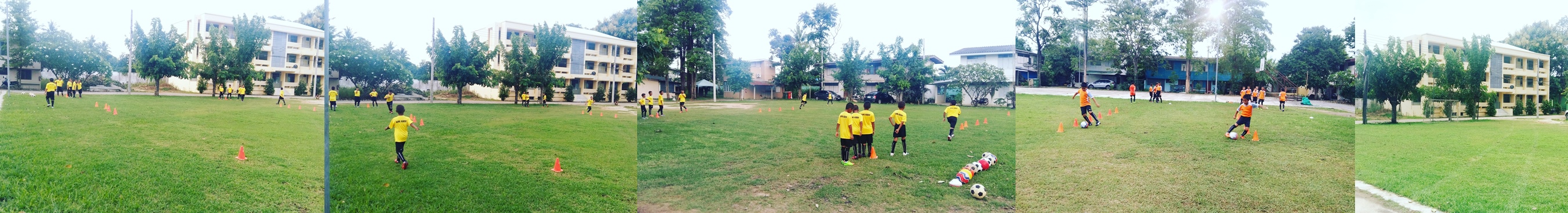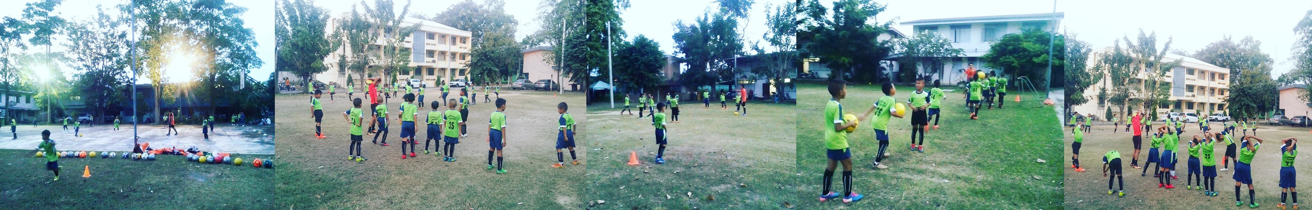 เรามีสนามซ้อมปกติที่อยู่ในโรงเรียนครับ ก็ติดๆกับโรงพยาบาล สามารถเดินไปมาได้สะดวก (หมาไม่ดุ) แต่ไม่เพียงพอต่อจำนวนเด็กๆที่เข้ามาฝึกซ้อมฟุตบอล เลยต้องแบ่งสนามซ้อมเป็นรุ่นๆ โดยสนามโรงพยาบาลแห่งนี้ จะซ้อมเฉพาะรุ่น 9-10 ปี ก็ประมาณ 20-25 คน ผู้ปกครองจะพาไปส่งที่สนามซ้อมหลัก และผมจะพาเดินมาซ้อมในโรงพยาบาล ซ้อมเสร็จก็จะพาเดินกลับไปรวมที่สนามใหญ่ เพื่อเลิกแถวด้วยกันทุกๆวัน