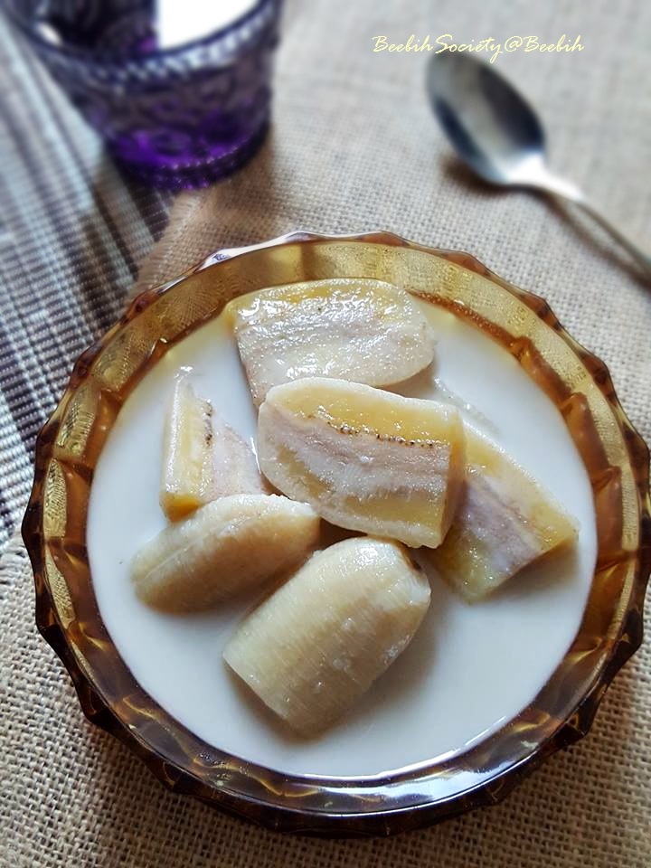 กล้วยบวชชีสูตรนี้ทำออกมาแล้วน้ำกะทิไม่เป็นสีเทา/สีฟ้าอมเทา น้ำกะทิมีสีขาวนวล