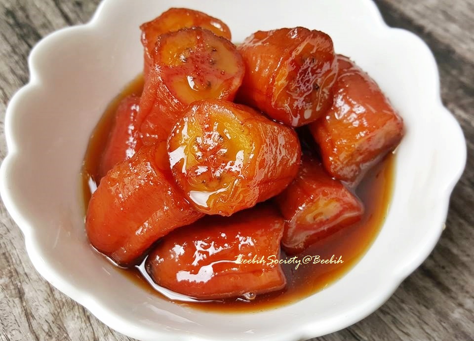 เมื่อนำมาเชื่อมจะได้กล้วยเชื่อมสีแดงเข้ม ทำกล้วยบวชชีจึงสวยงามทุกครั้ง