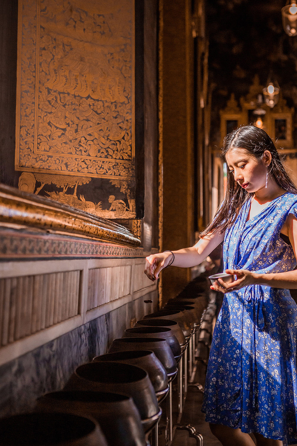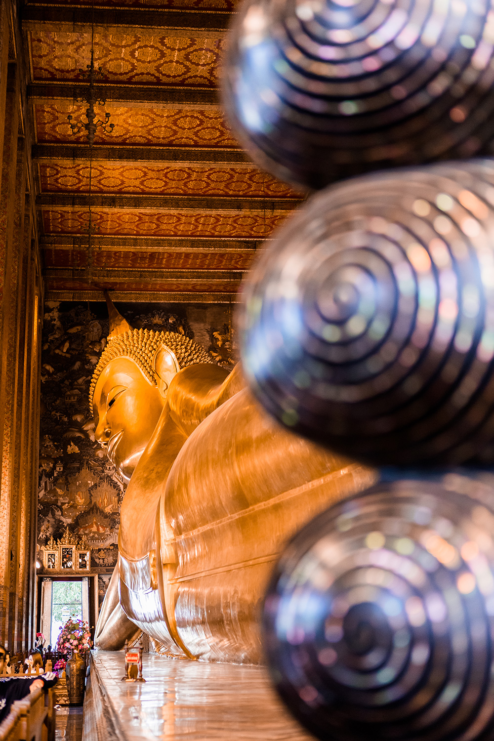 ข้างในวิหารพระพุทธไสยาส สามารถแลกเหรียญใส่บาตรได้นะคะ สวยแล้วก็ต้องใจบุญกันนิดนึง