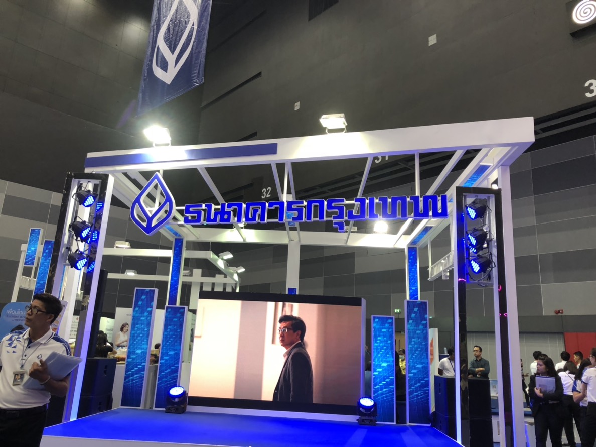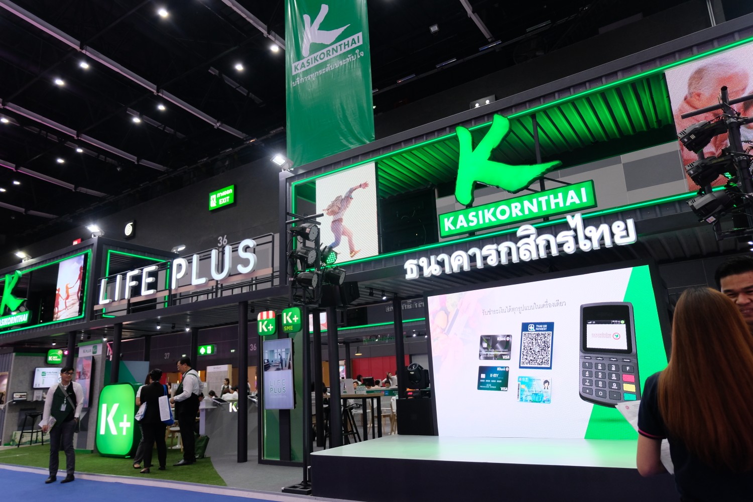 ถัดมาเป็นบูธธนาคารกสิกรไทย สีเขียวอร่ามเห็นชัดมาแต่ไกล บูธนี้คือคนใช้เยอะเหมือนกันนะเนี่ย