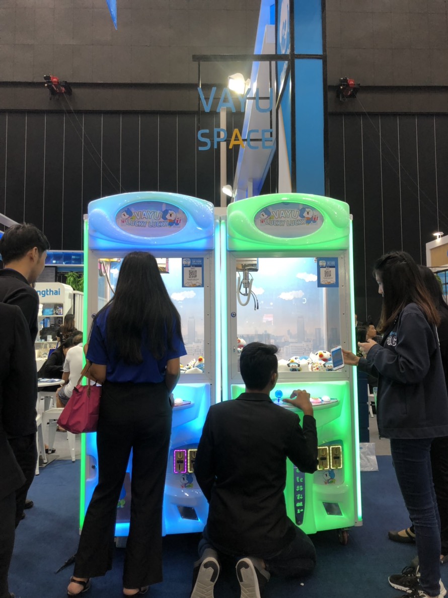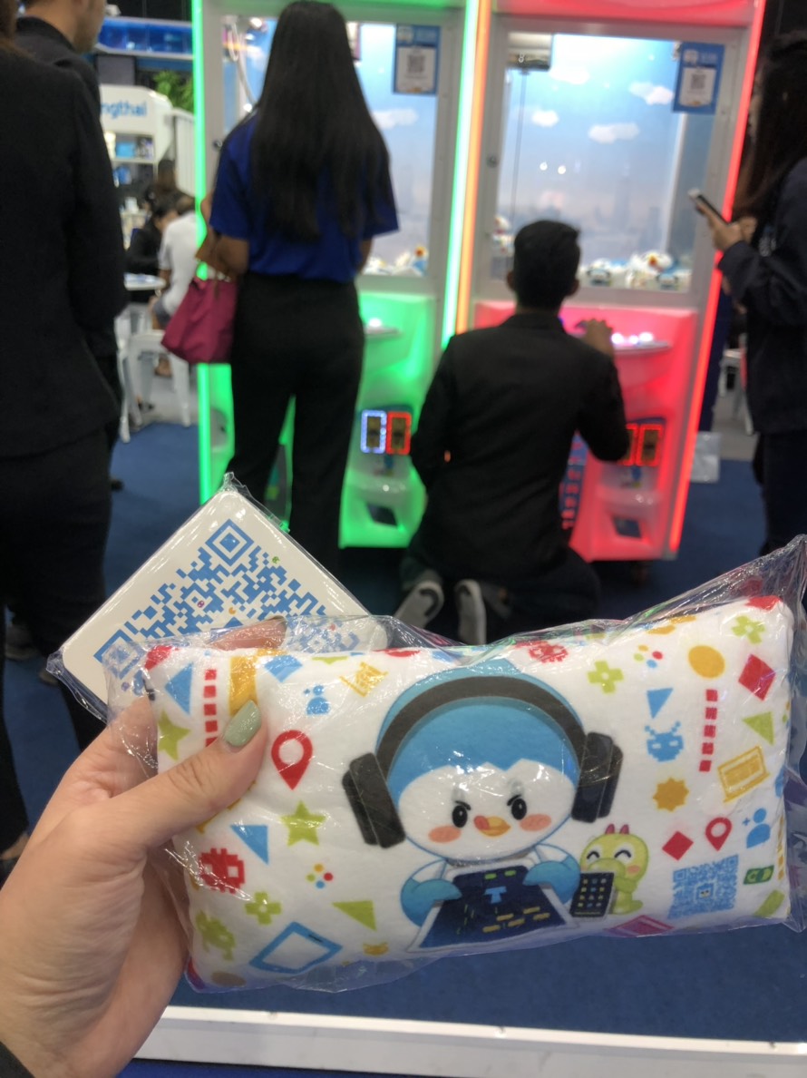 แต่บูธที่เรากรี๊ดมากที่สุด นี่เลยจ้าบูธธนาคารกรุงไทย เพราะมันมี ตู้เกมส์ คือพวกพี่ ๆ พนักงานพยามชัดชวนเราเข้าไปเล่น ด้วยความที่เป็นวันแรกอะเนอะ คนไม่ค่อย เราเลยต้องเล่นเรียกแขกให้พี่เค้าซะหน่อย เกมแรก ตู้คีบตุ๊กตา กับหมอน จ้า ครั้งแรกไม่ได้จ้า เลยลองขอพี่เค้าใหม่ ก้อไม่ได้อีก สุดท้ายความพยามเป็นผลจ้า